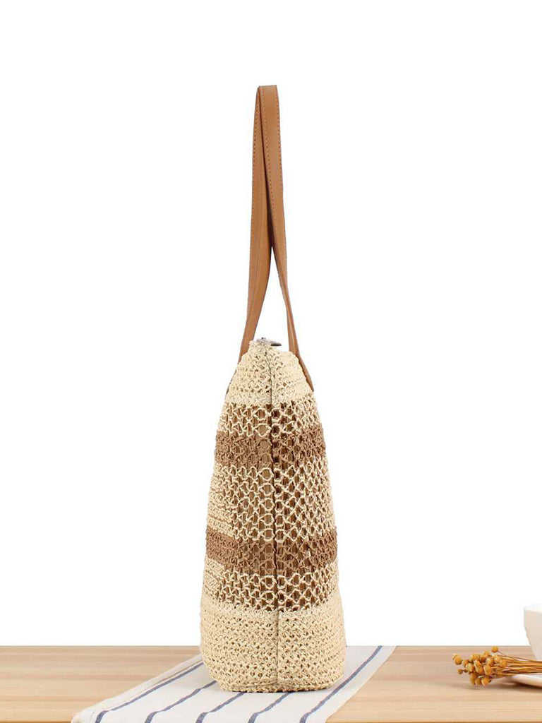 Bolso de hombro informal de tejido de paja con bloques de colores para mujer