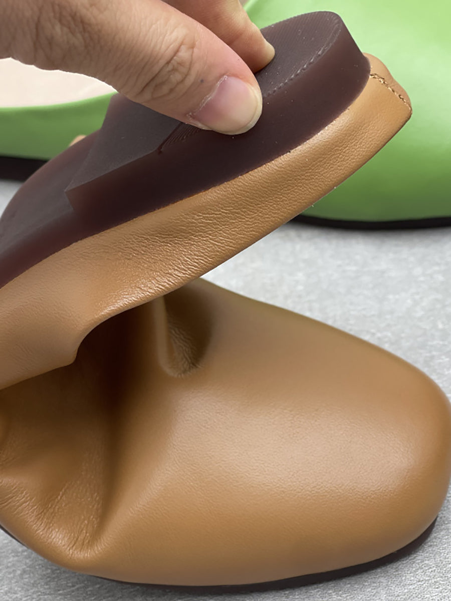 Zapatillas de tacón bajo informales de piel auténtica de verano para mujer