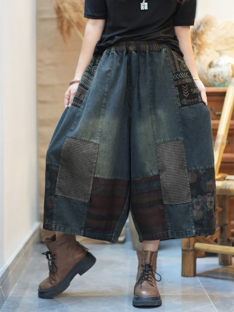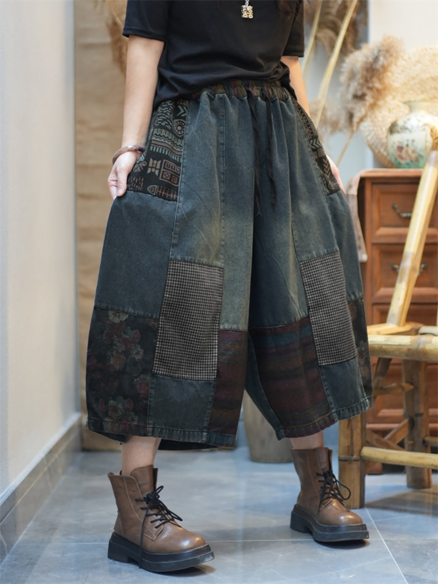 Pantalones anchos de mezclilla con parches de verano para mujer