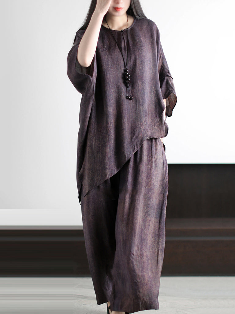 Camisa + pantalones de algodón de lino liso vintage para mujer de talla grande
