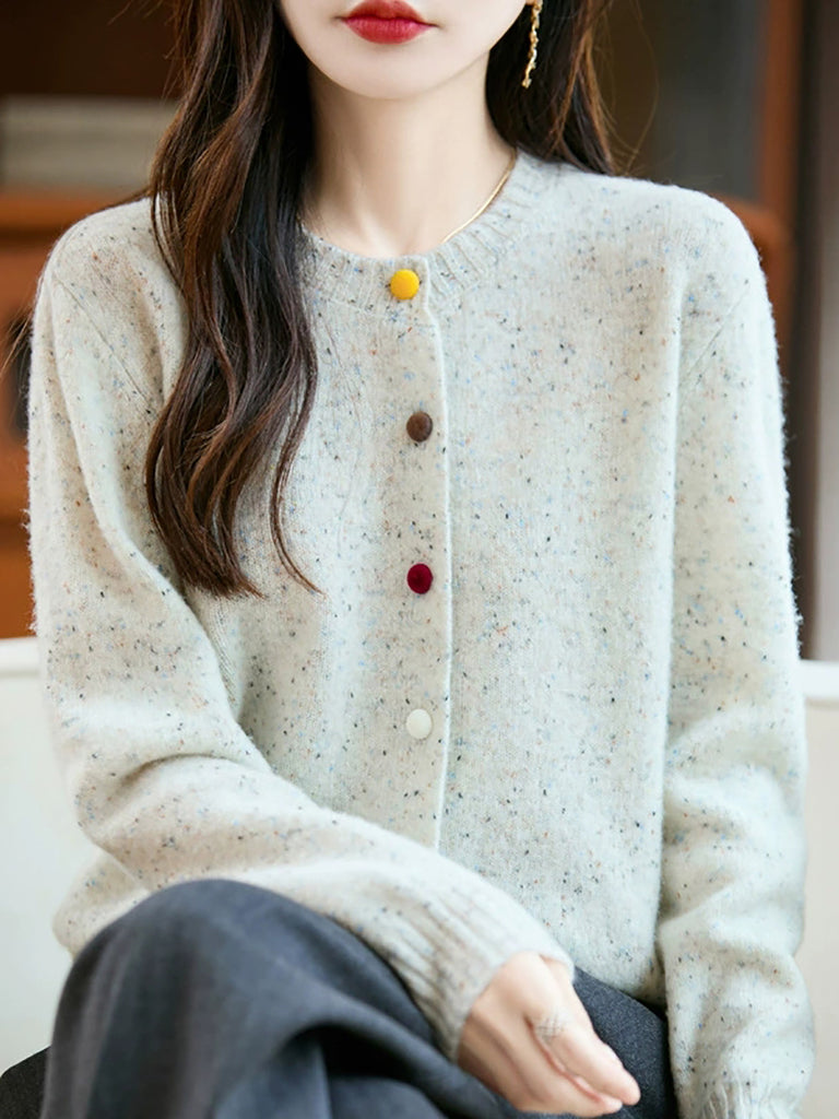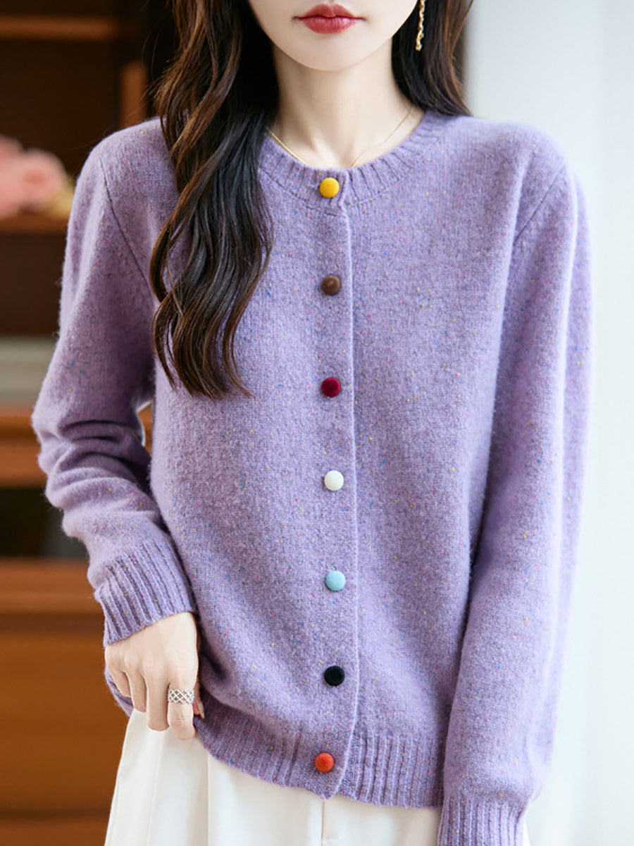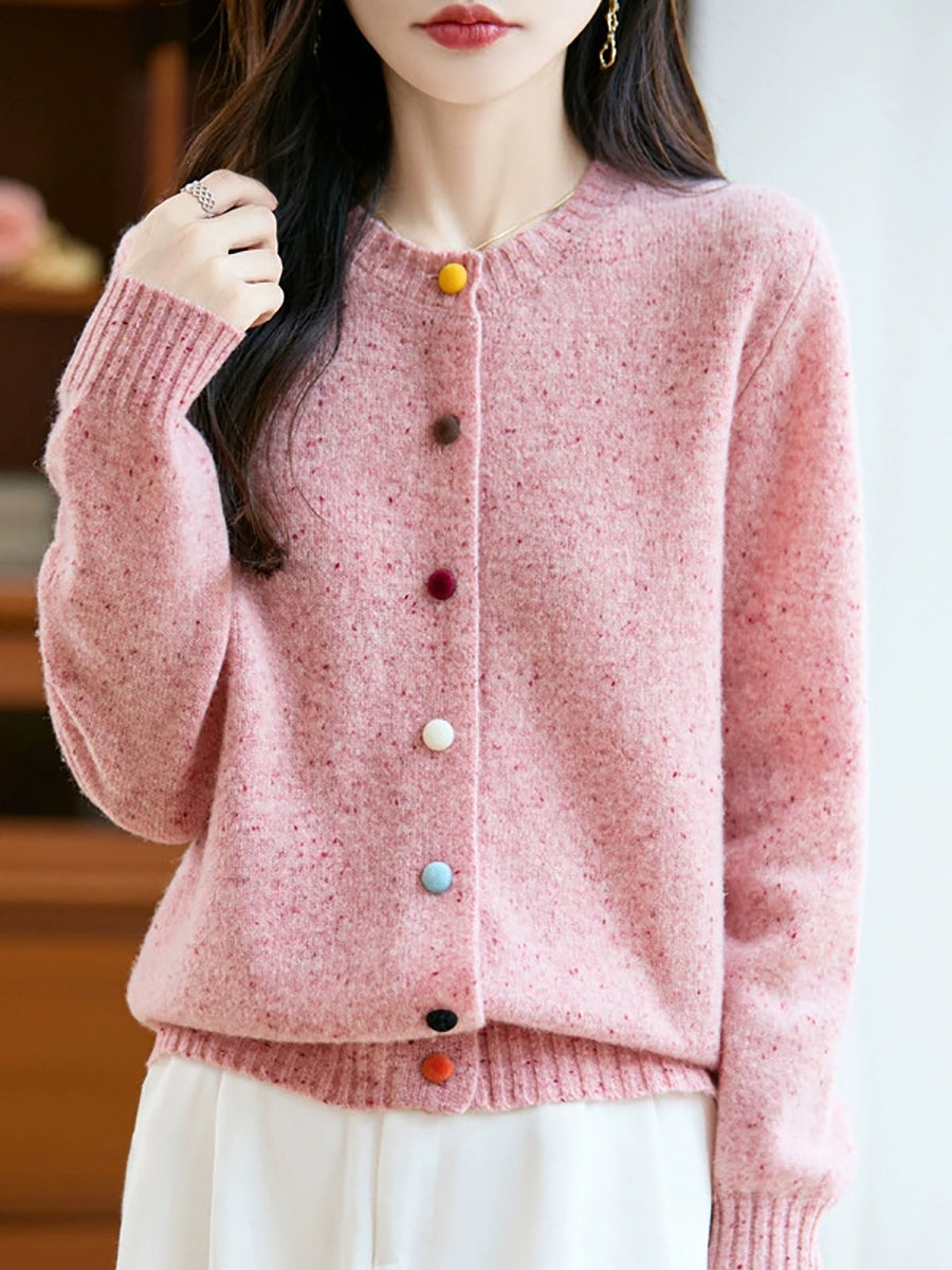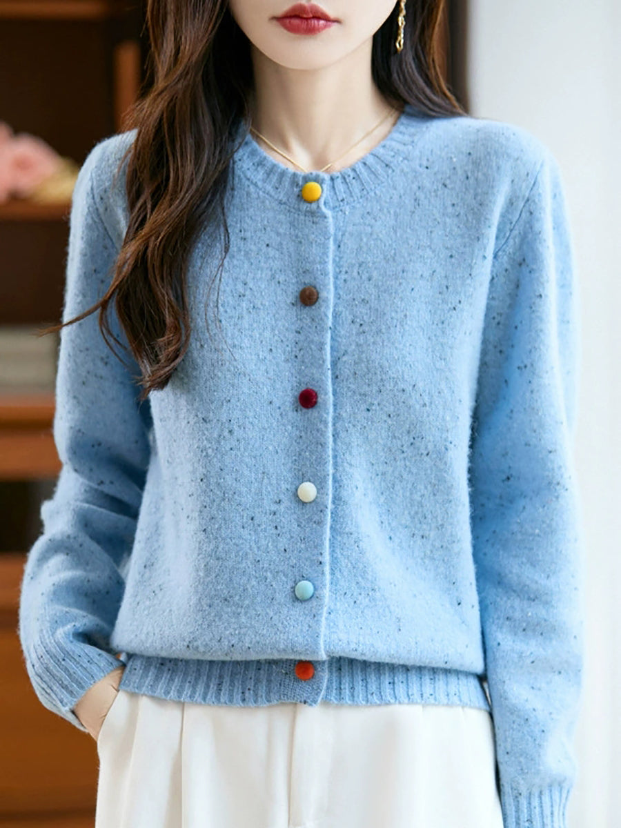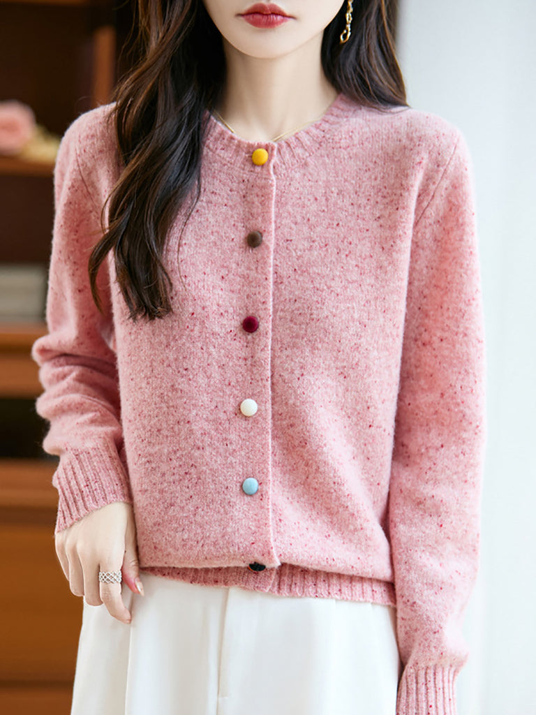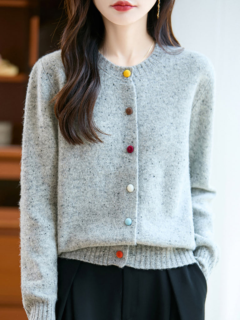 Cárdigan de lana de color puro con cuello redondo para mujer de otoño