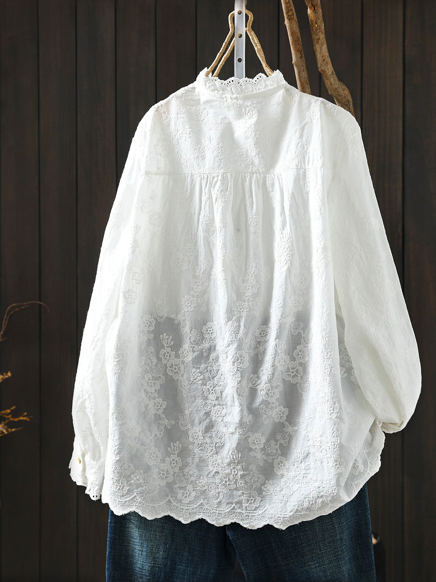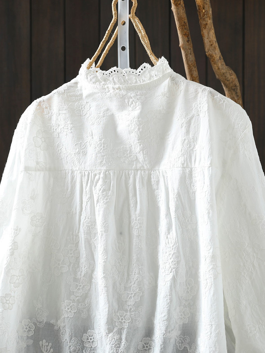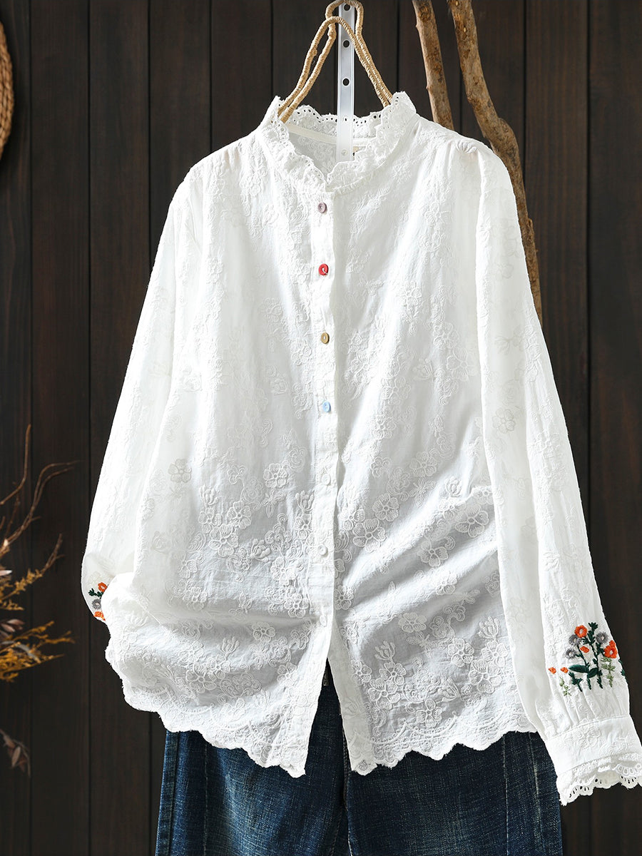Camisa de primavera para mujer con bordado floral artístico 100 % algodón