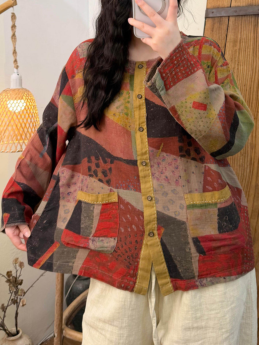 Camisa vintage de cuello redondo con flores de primavera para mujer