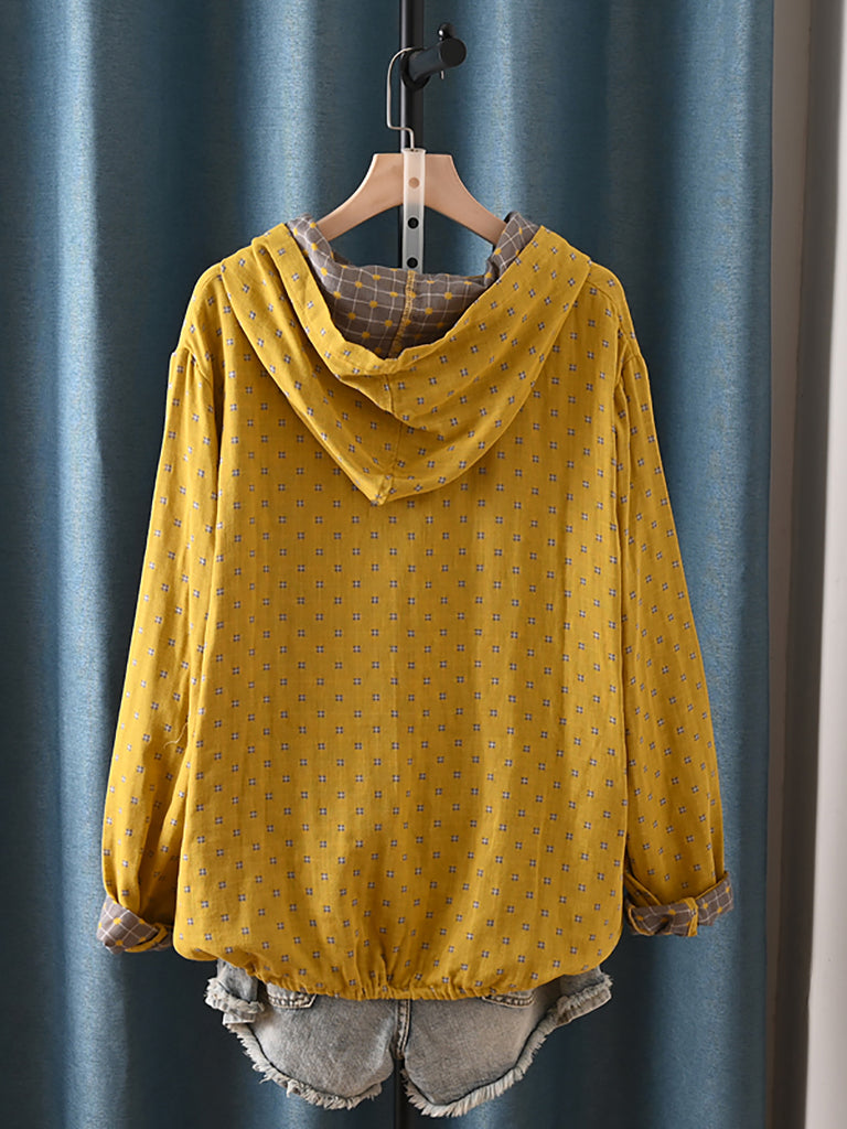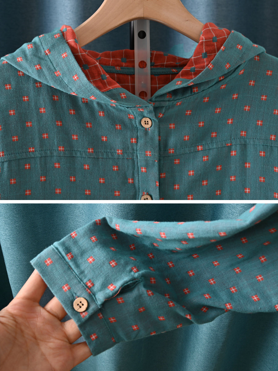 Camisa con capucha a cuadros vintage de otoño para mujer, 100 % algodón