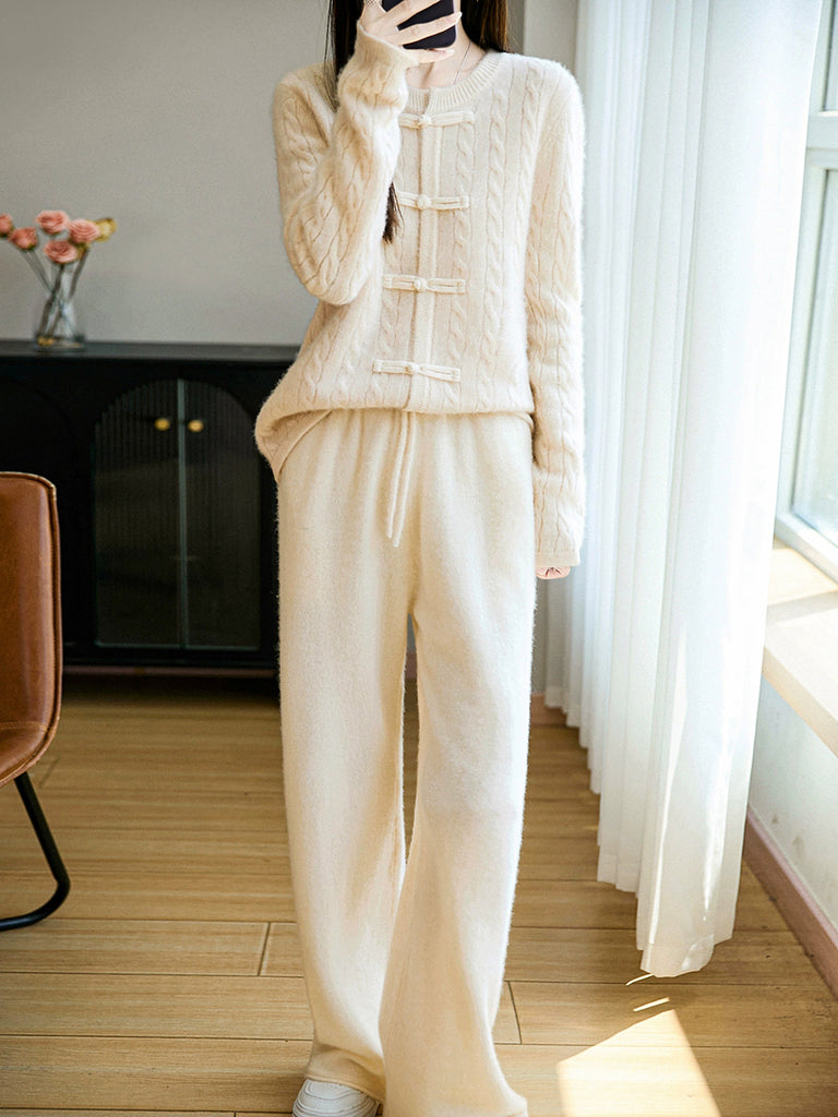 Suéter étnico cálido de lana con cuello redondo para mujer de otoño
