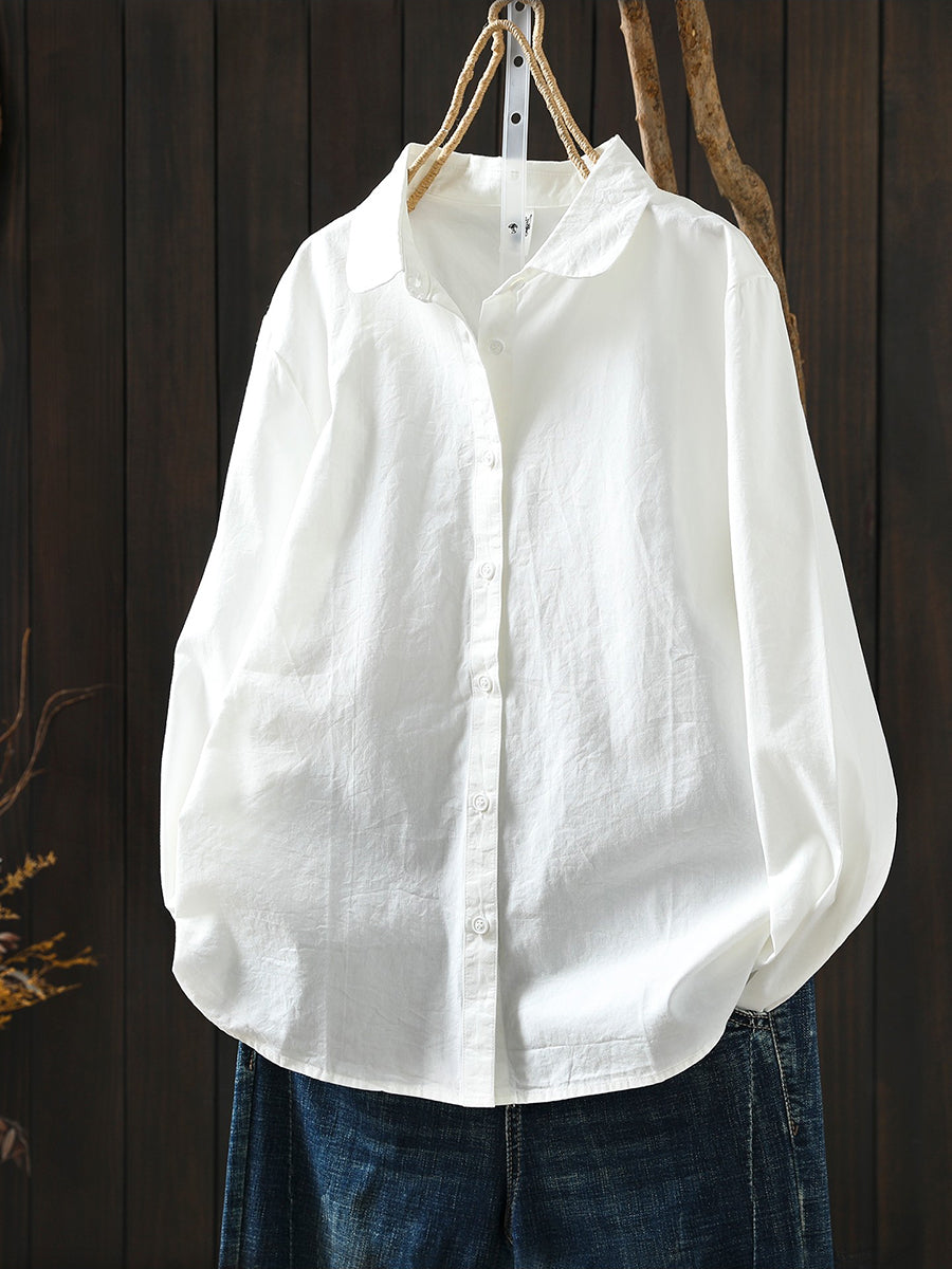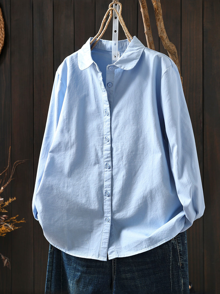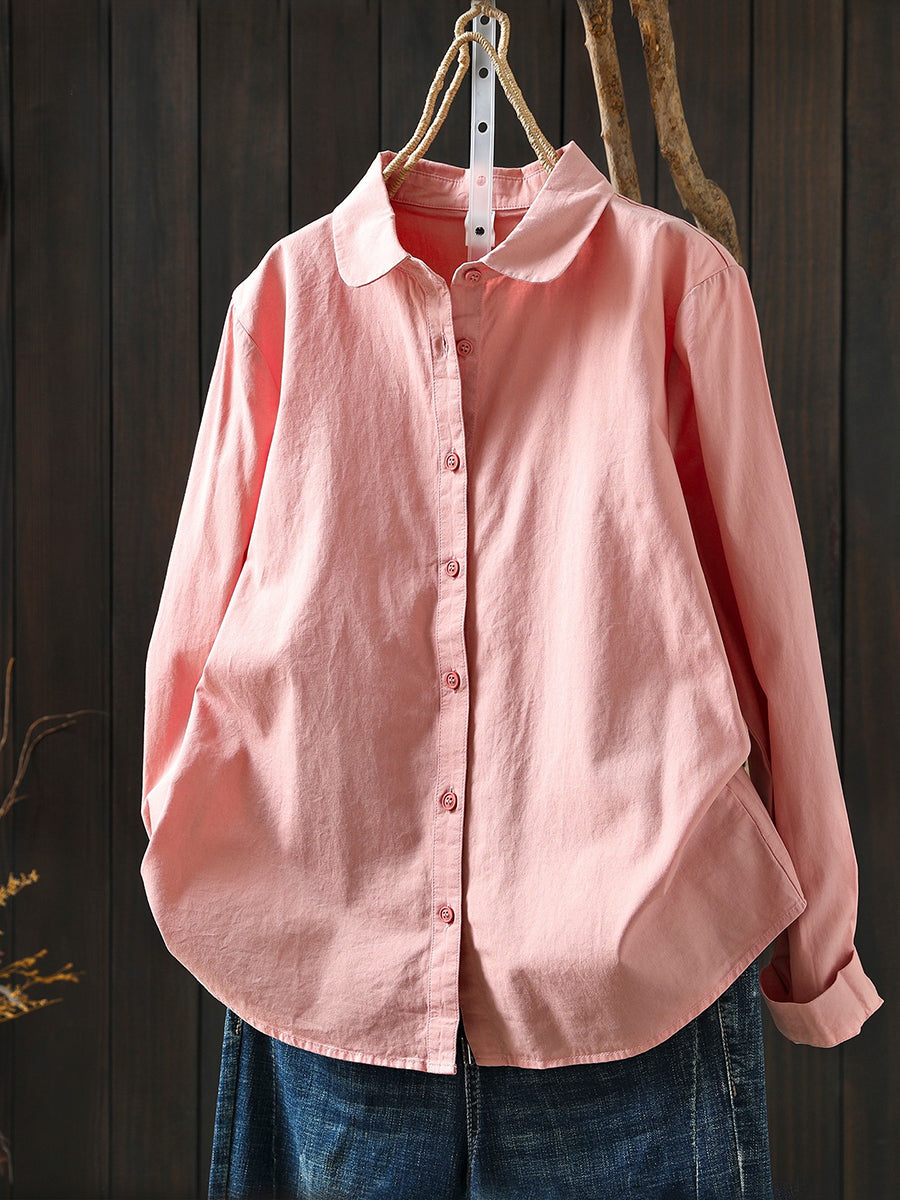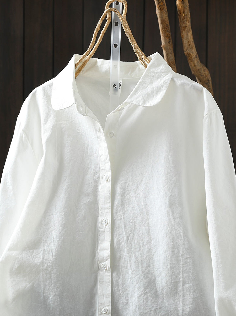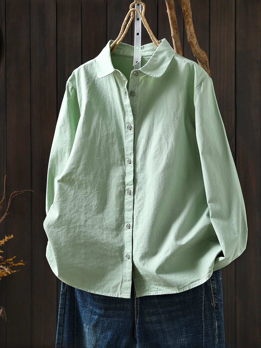 Camisa informal de primavera para mujer, 100 % algodón, color puro