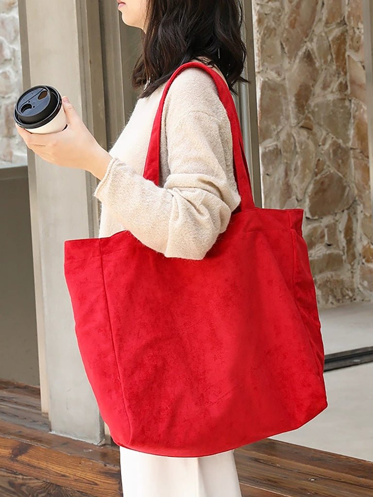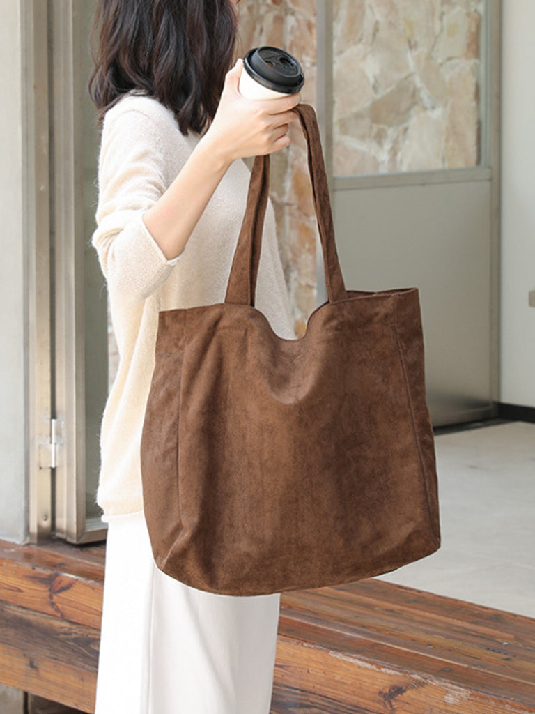 Bolso tote de ante, bolso de hombro de terciopelo de gran capacidad