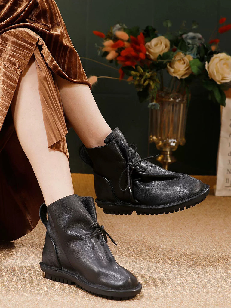 Zapatos planos vintage de piel auténtica de color puro para mujer