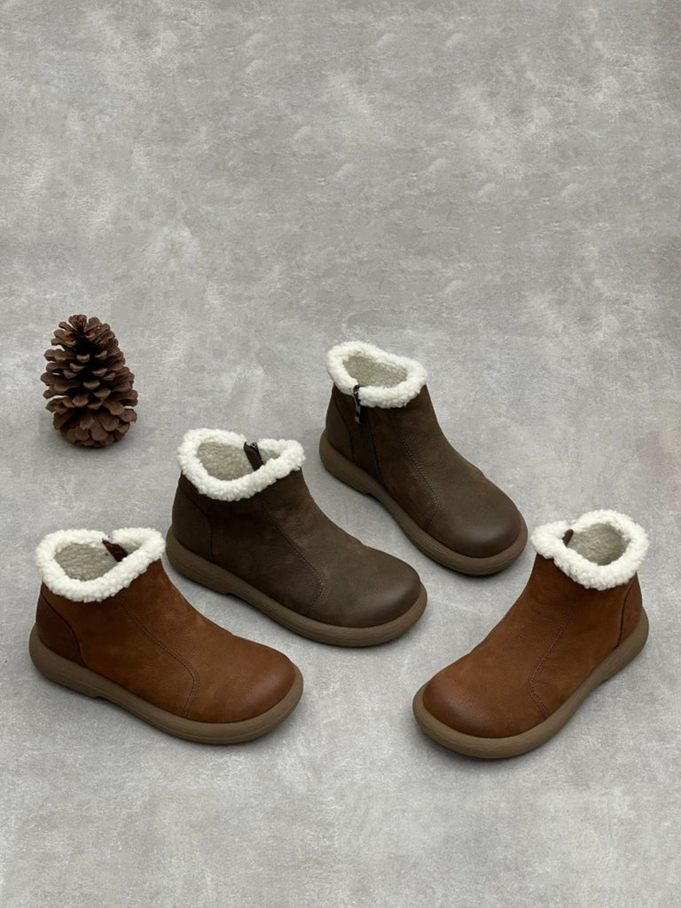 Botas de plataforma vintage con forro polar de color puro para mujer