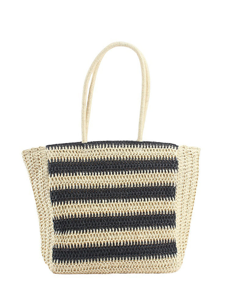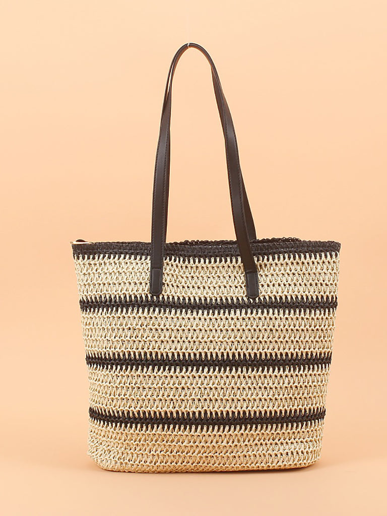 Bolso de hombro informal de paja a rayas para mujer
