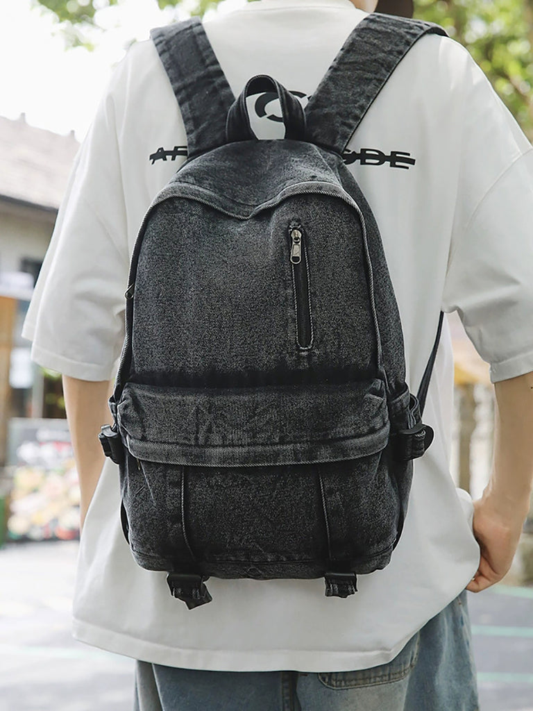 Mochila vaquera de color puro de gran capacidad para mujer