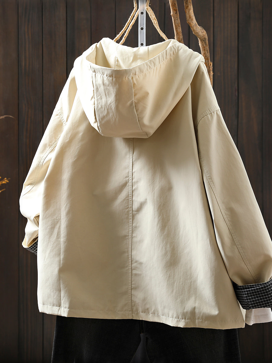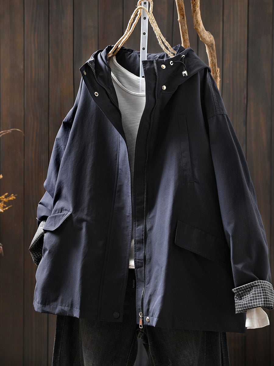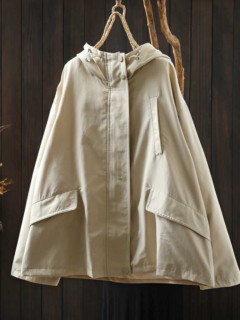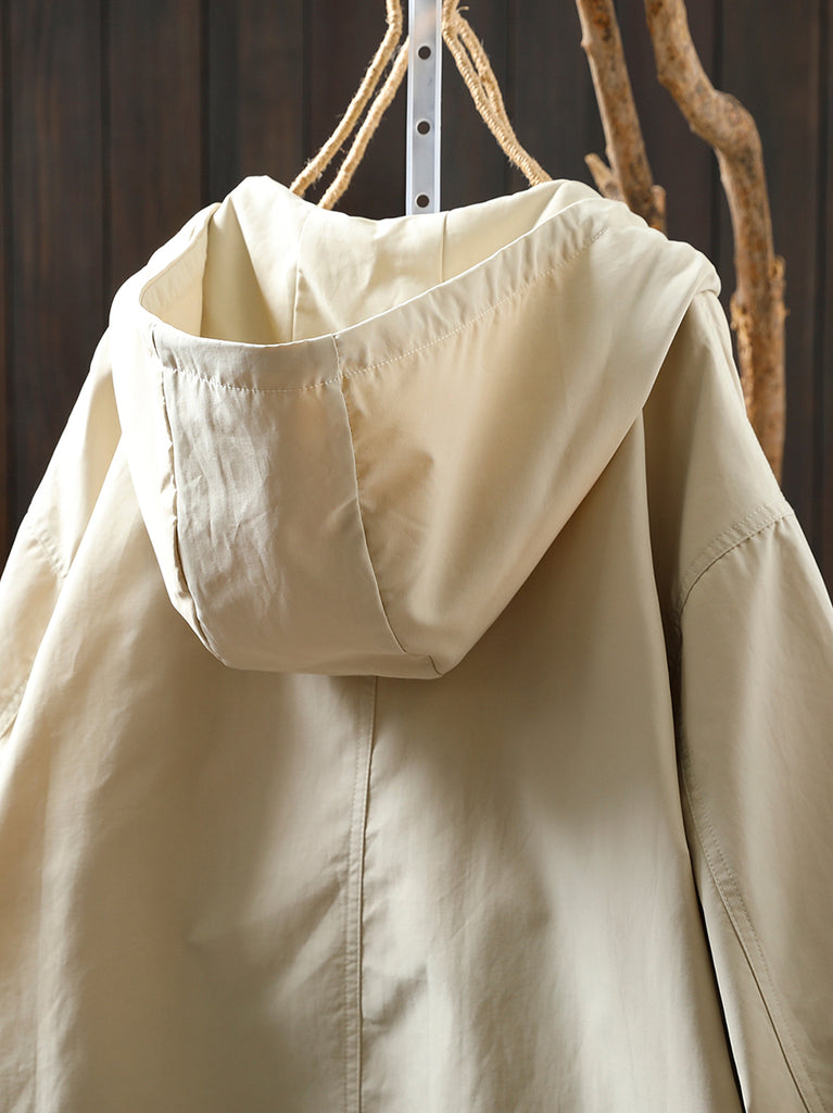 Women Autumn Casual Pure Color Windproof Hooded Jacket