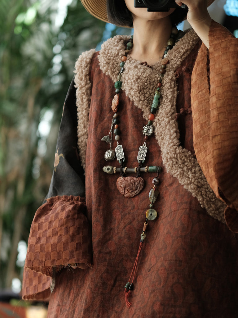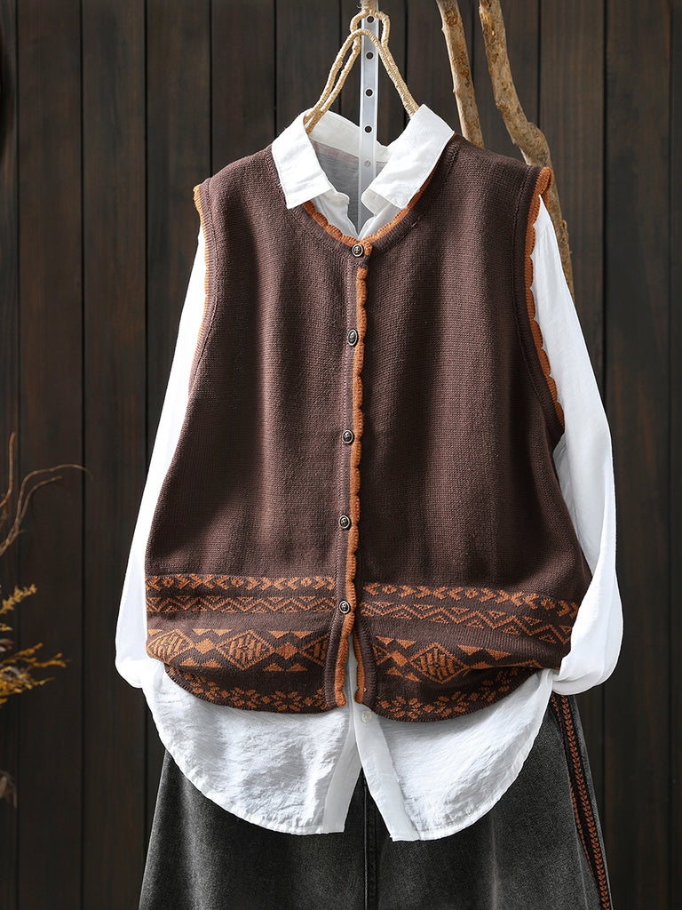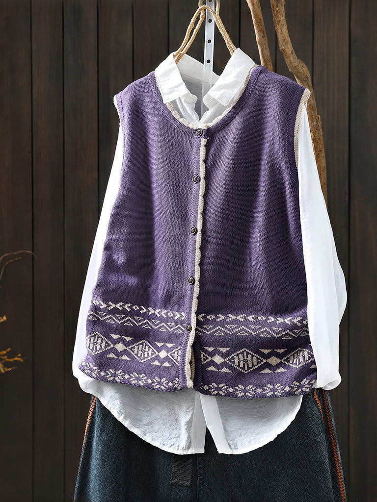Women Winter Vintage Fleece Spliced O-Neck Padded Vest