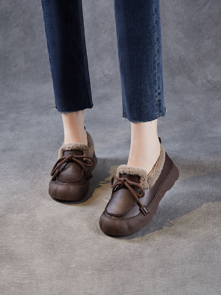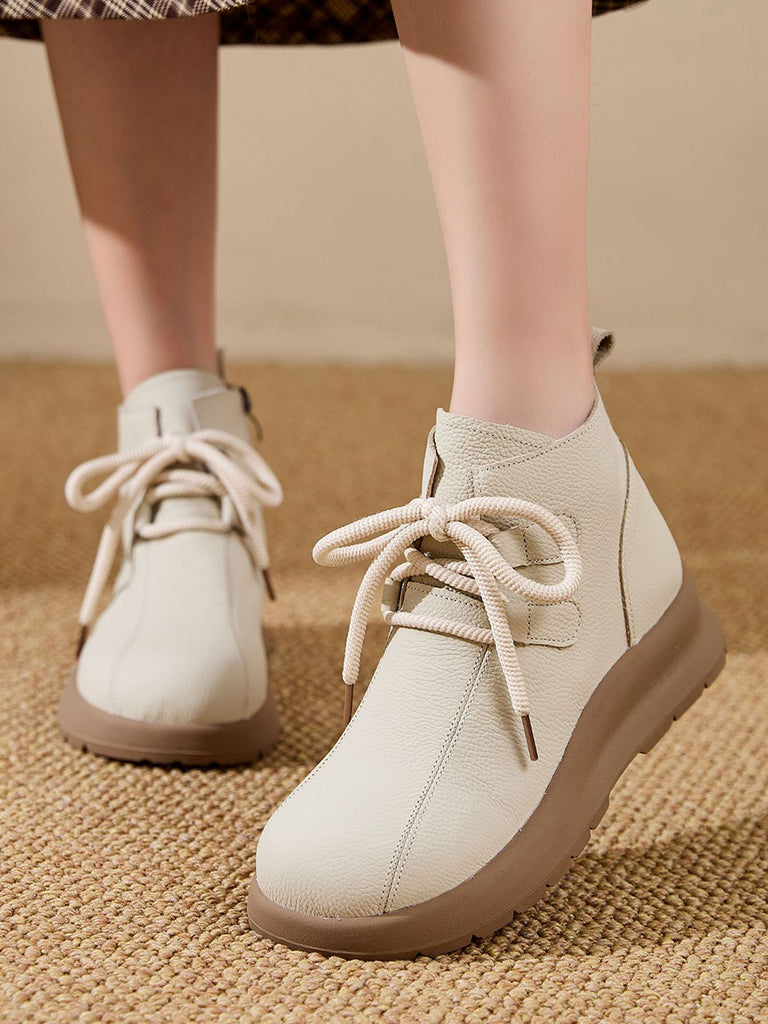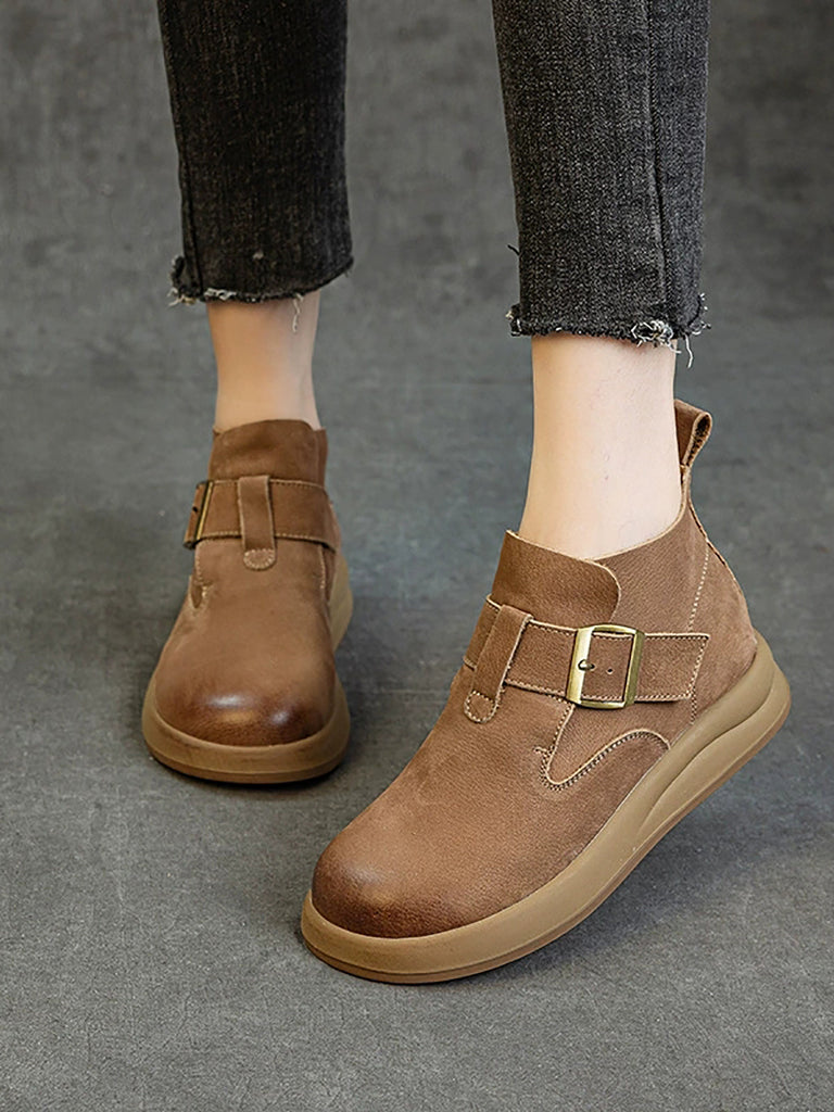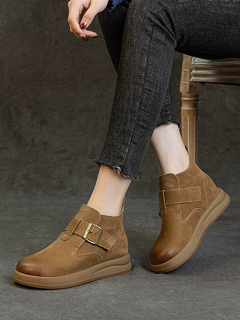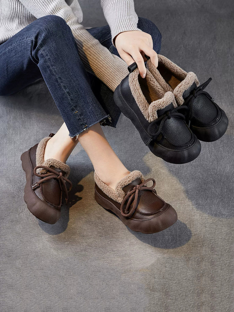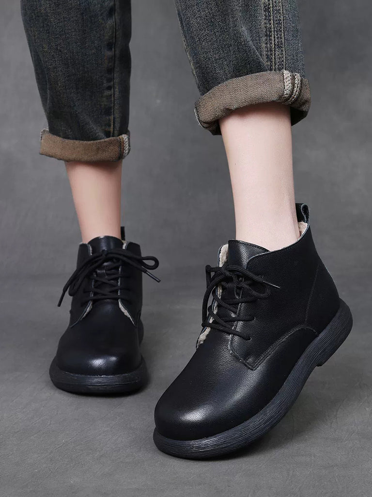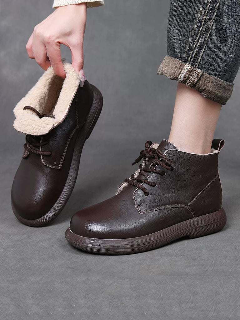 Women Winter Genuine Leather Fleece-lined Ankle Boots