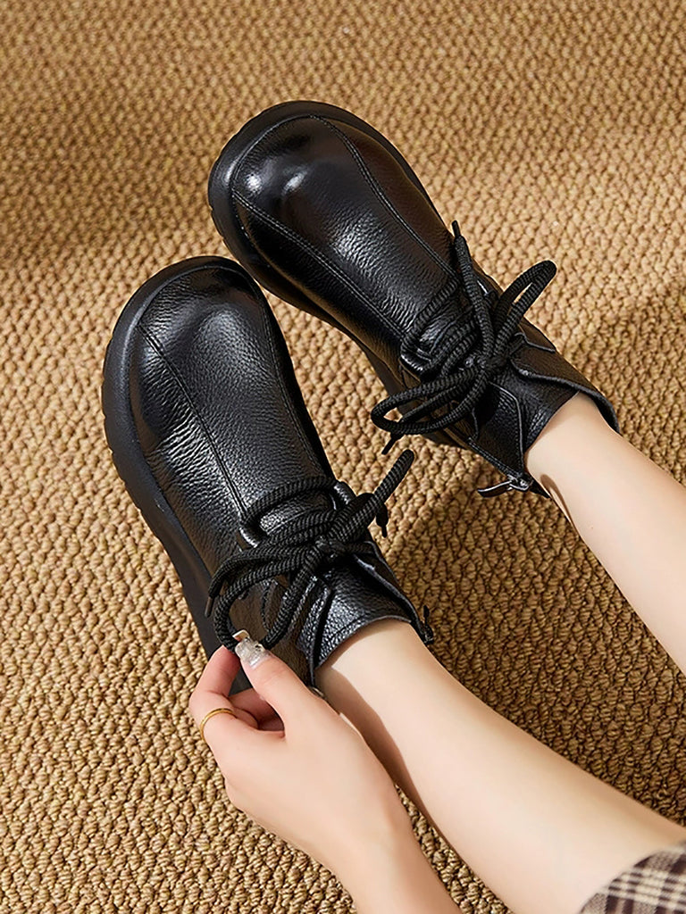 Women Vintage Genuine Leather Spliced Ankle Boots