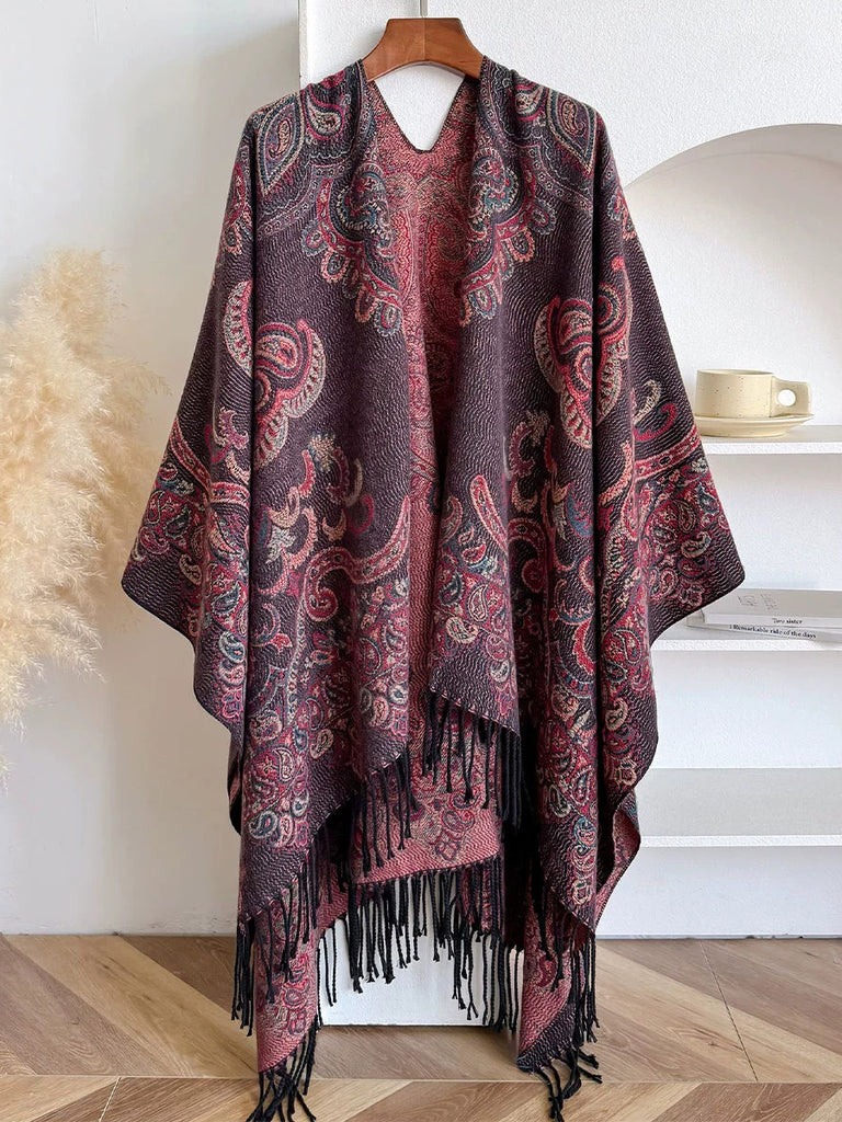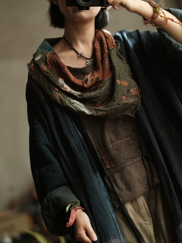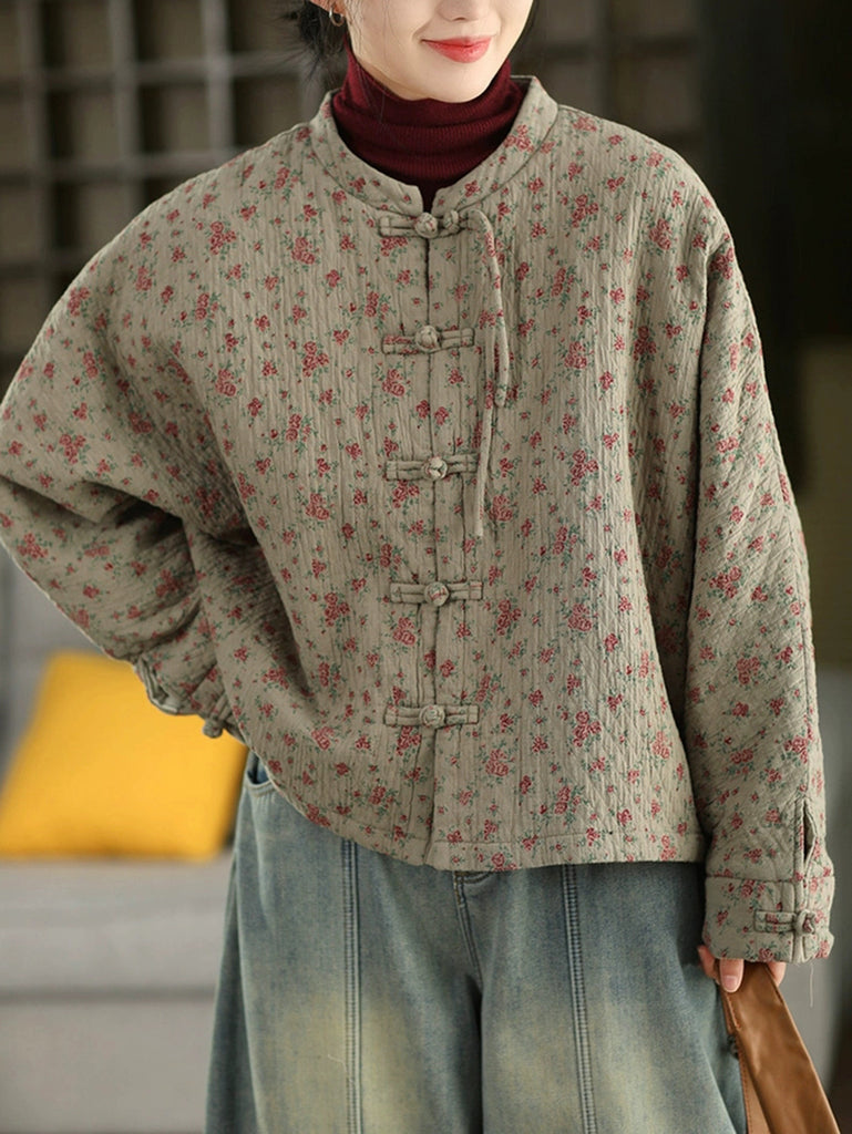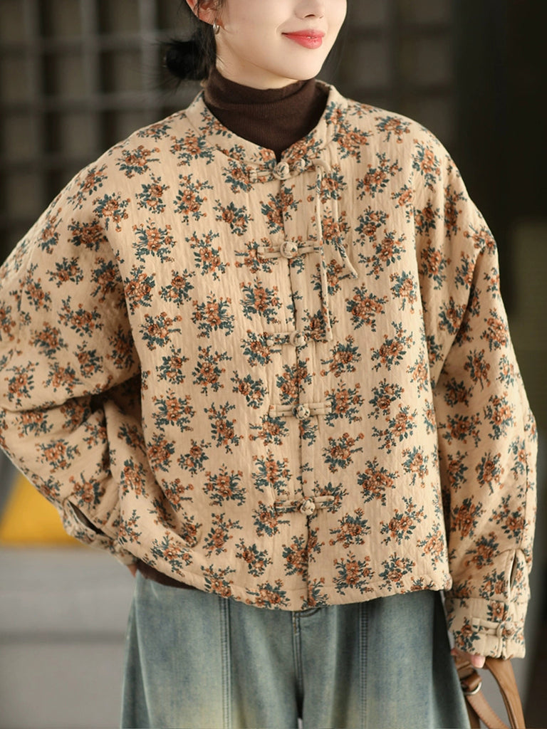 Women Winter Ethnic Floral Stand Collar Padded Coat