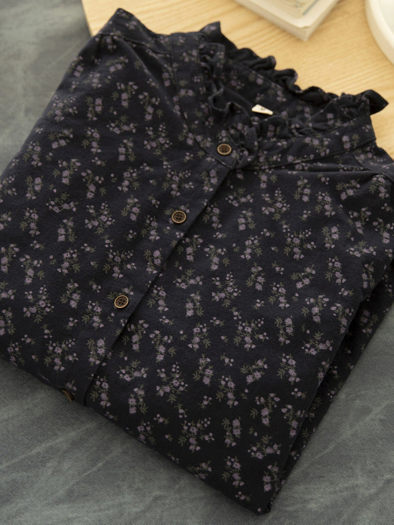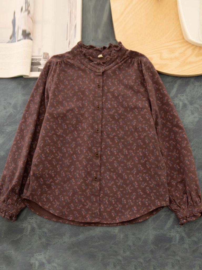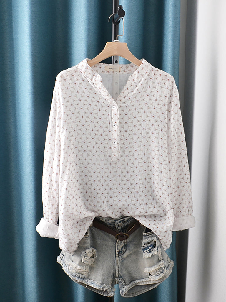 Women Artsy Floral 100%Cotton Stand Collar Blouse