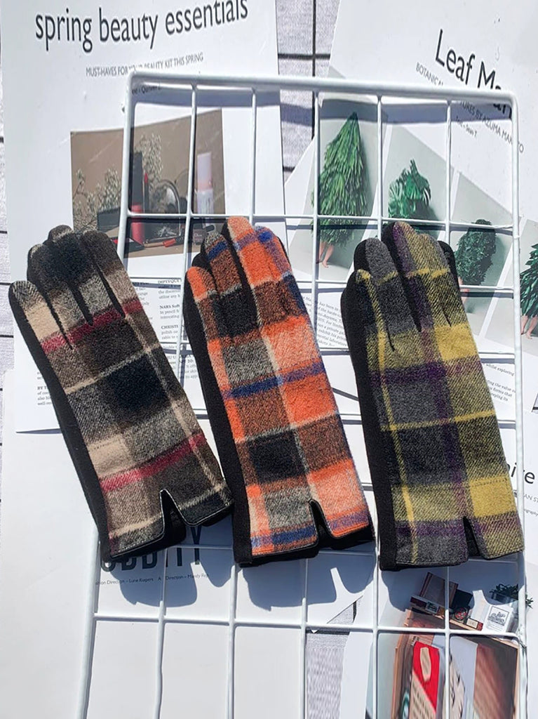 Women Ethnic Plaid Warm Touchscreen Cycling Gloves