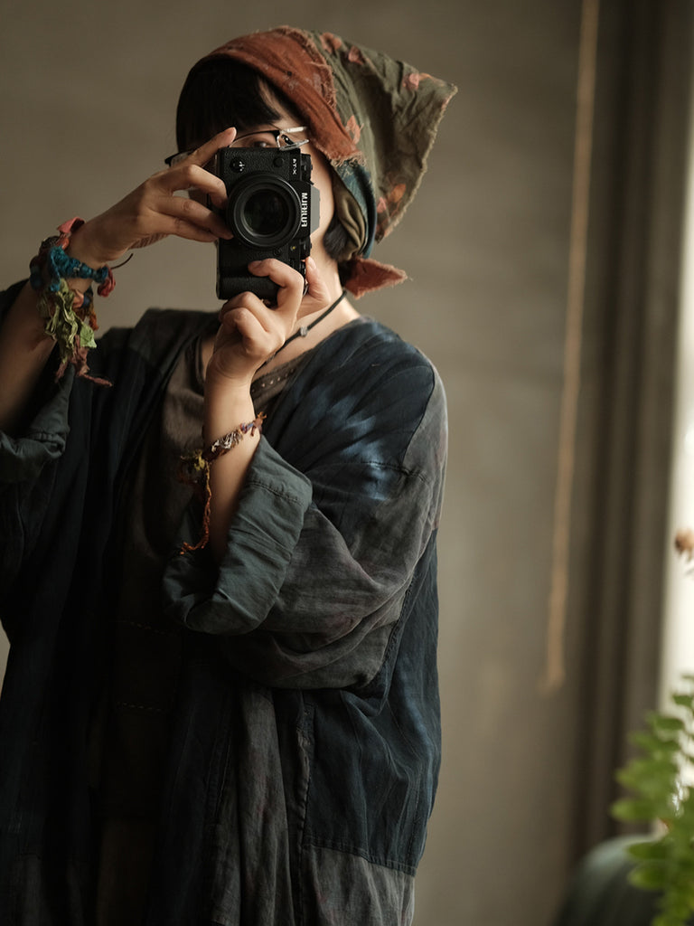 Women Winter Artsy Pure Color O-Neck Cotton Blouse