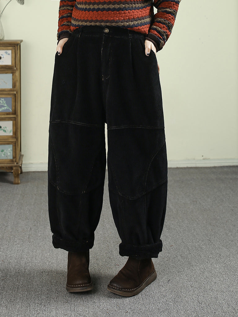 Women Winter Retro Pure Color Fleece-lined Harem Pants