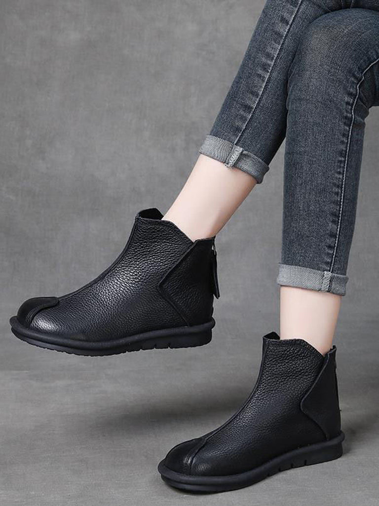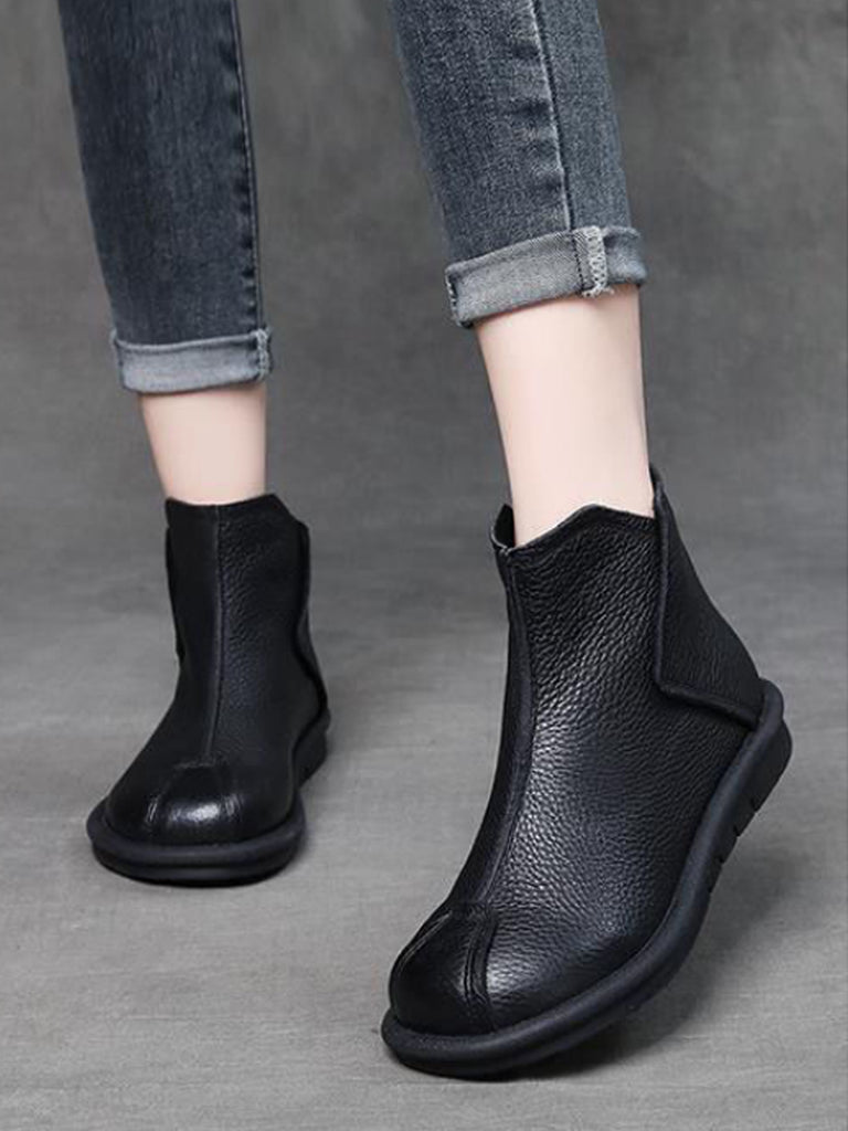 Women Retro Genuine Leather Platfrom Ankle Boots