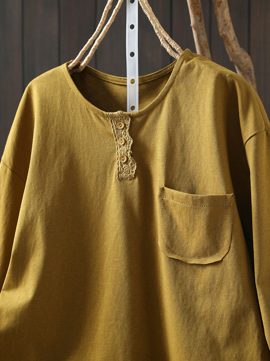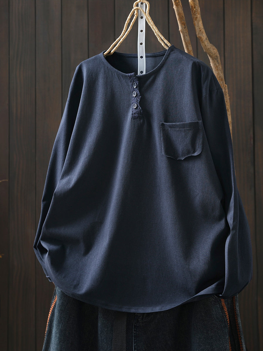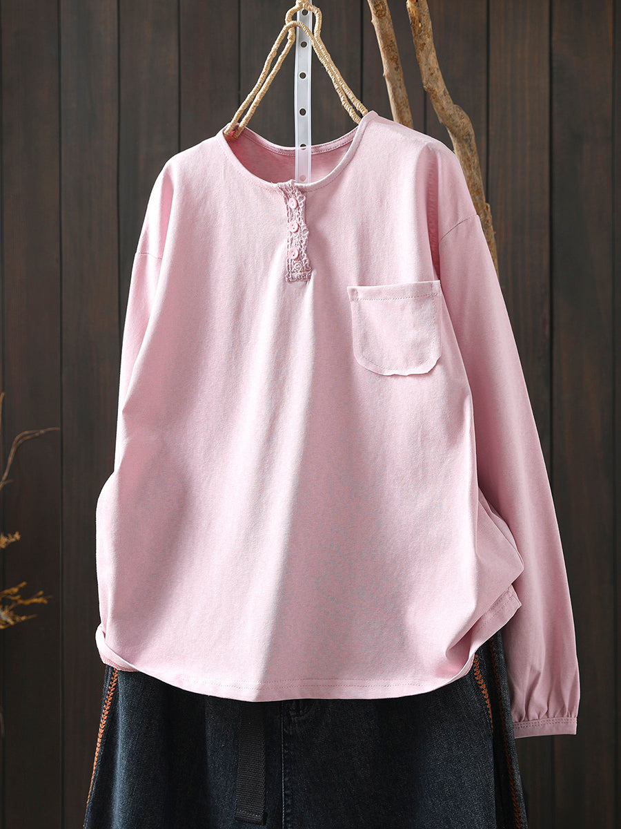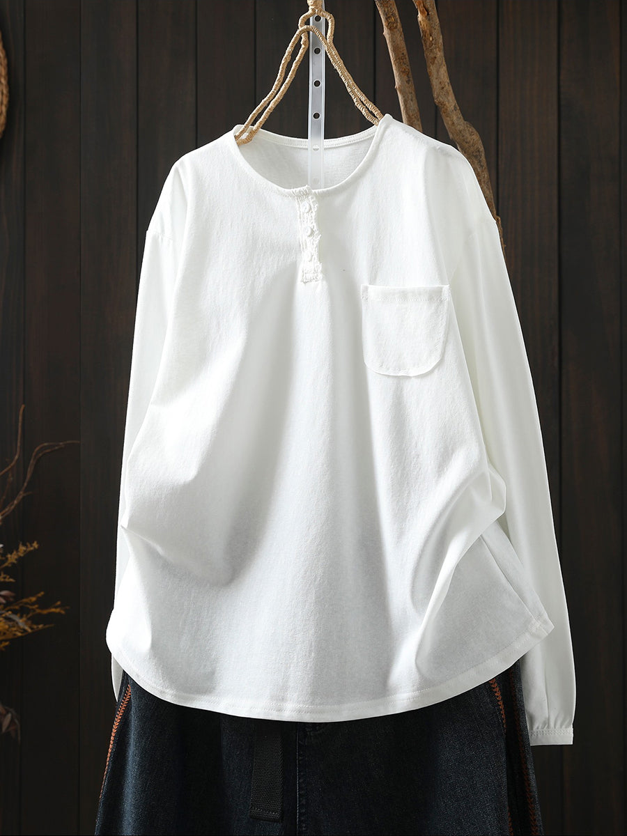 Women Spring Casual Pure Color Cotton Blouse