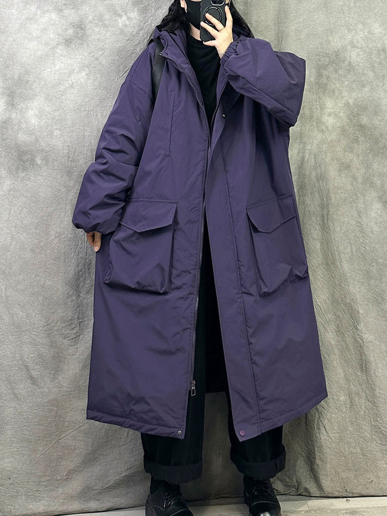 Plus Size Women Winter Casual Pure Color Hooded Padded Coat