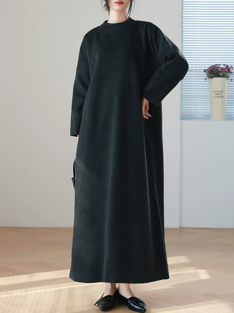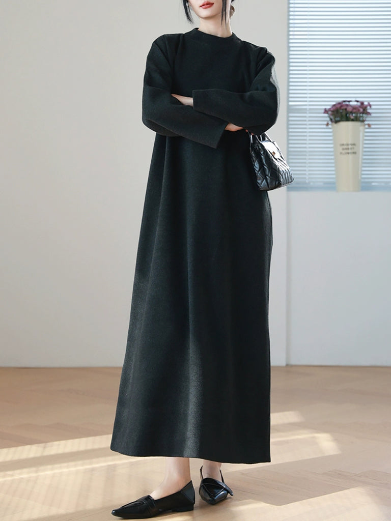 Women Autumn Vintage Pure Color O-Neck Ramie Cotton Dress