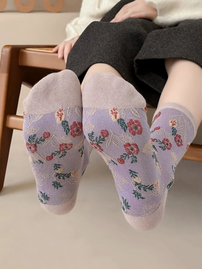 5 Pairs Women Artsy Flower Jacquard Cotton Socks