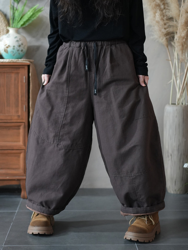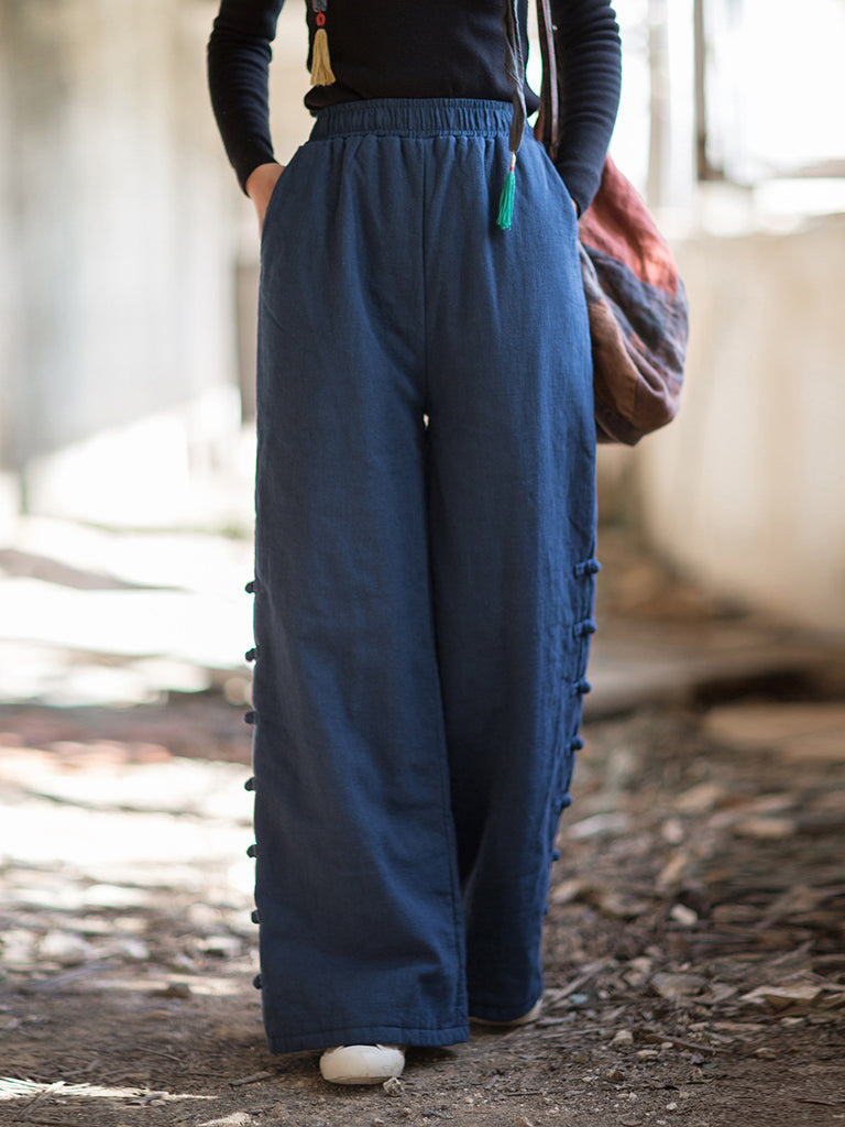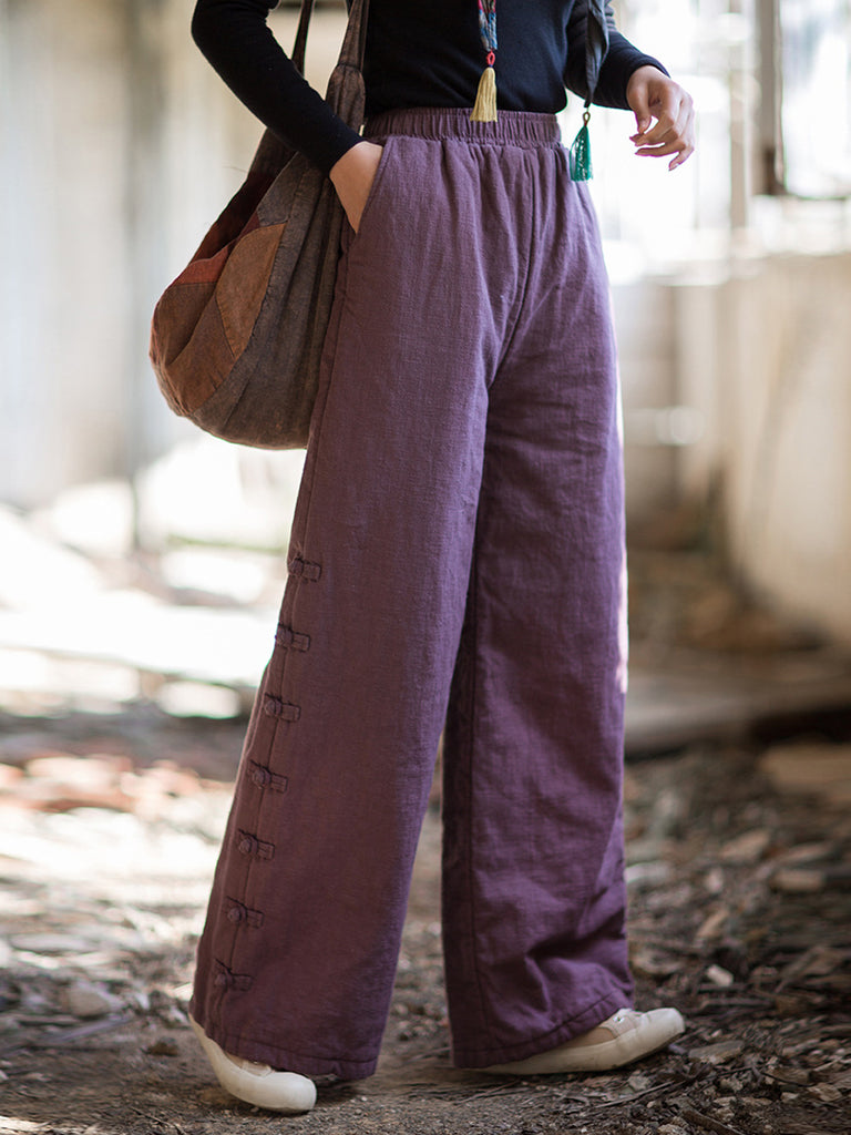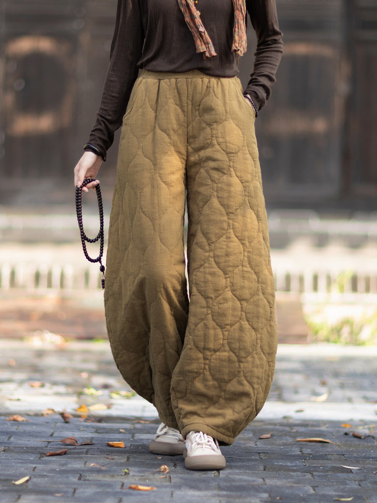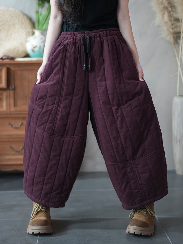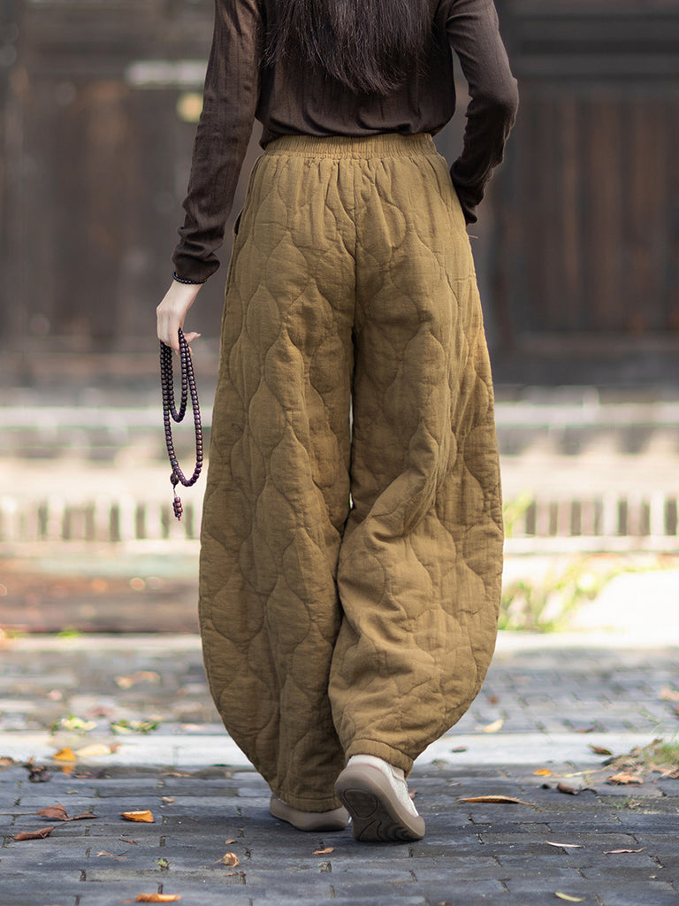 Women Winter Retro Pure Color Padded Wide-leg Pants