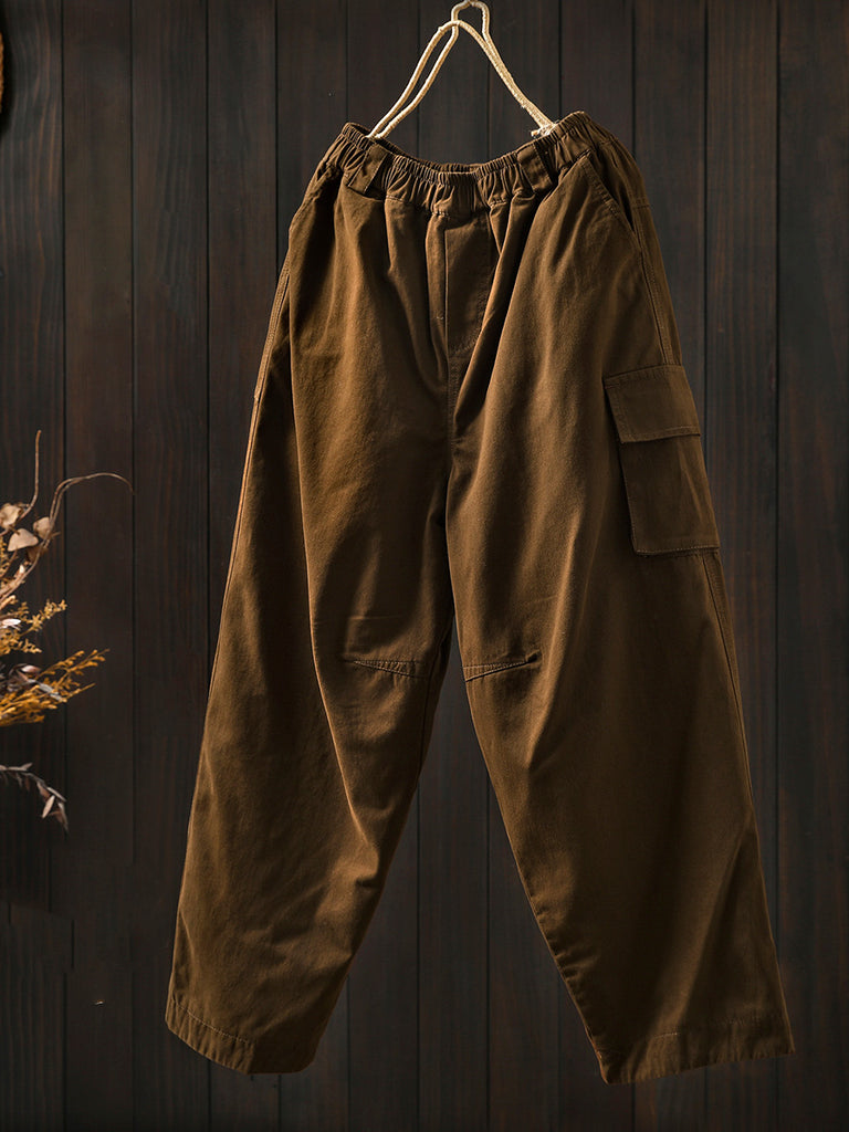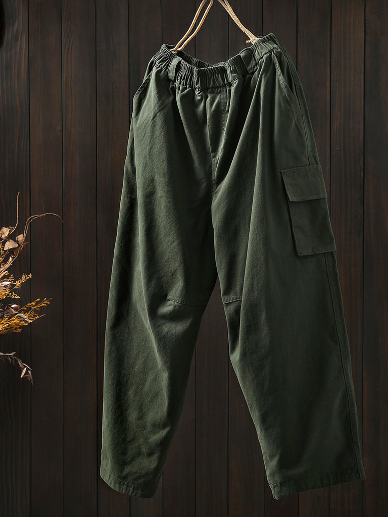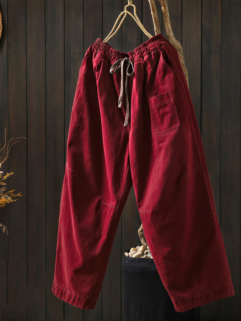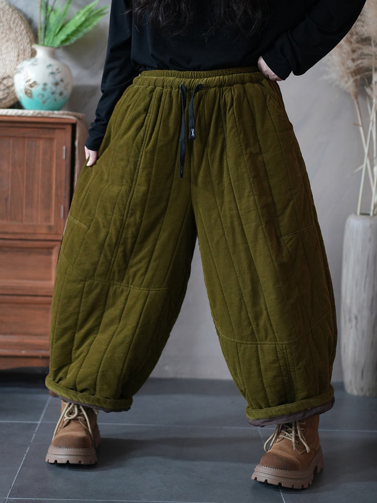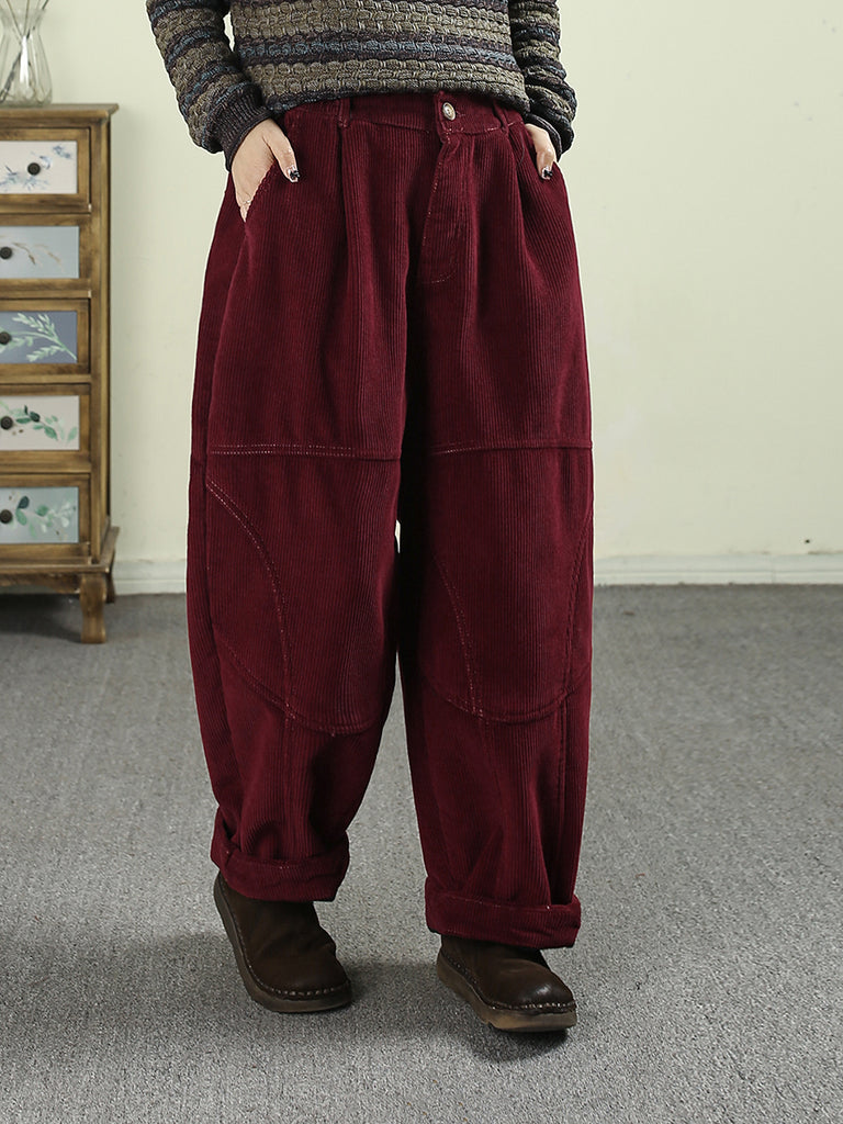 Women Winter Retro Pure Color Corduroy Padded Harem Pants