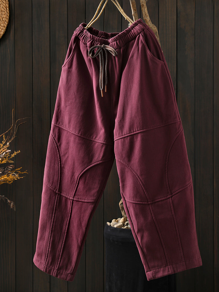 Women Winter Ethnic Pure Color Padded Straight Pants