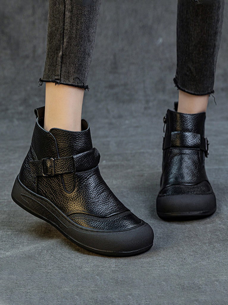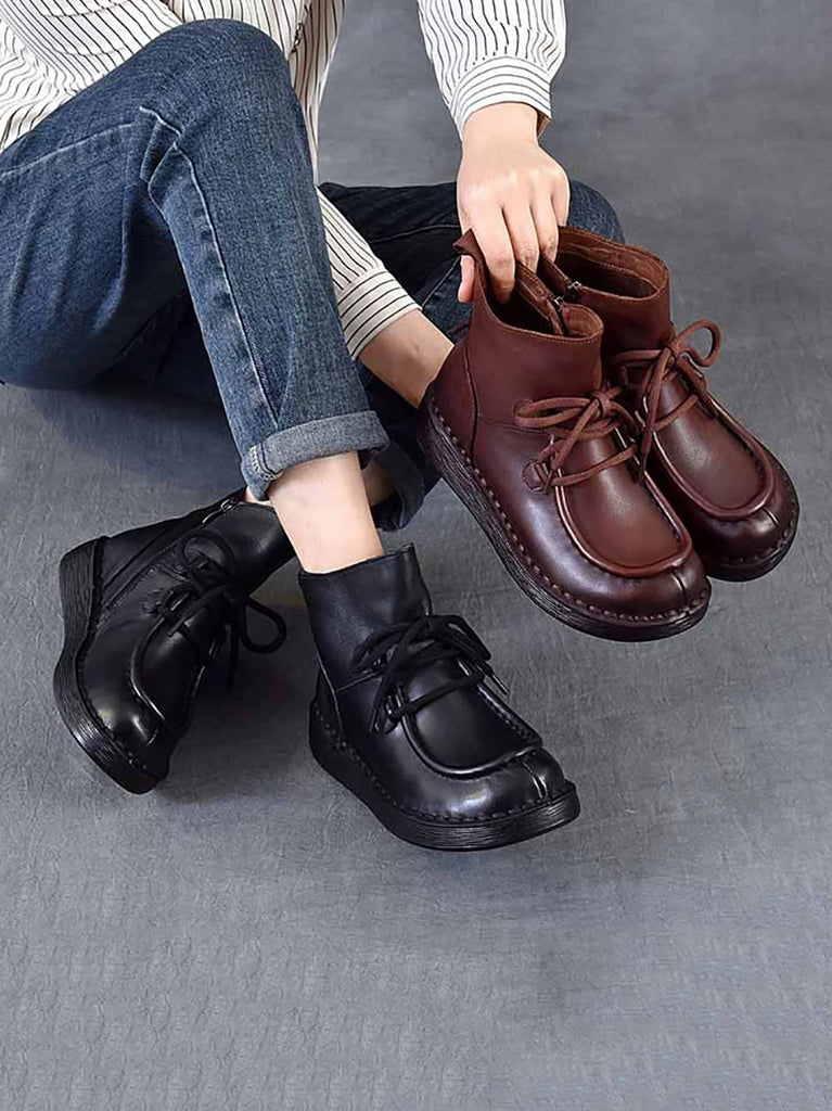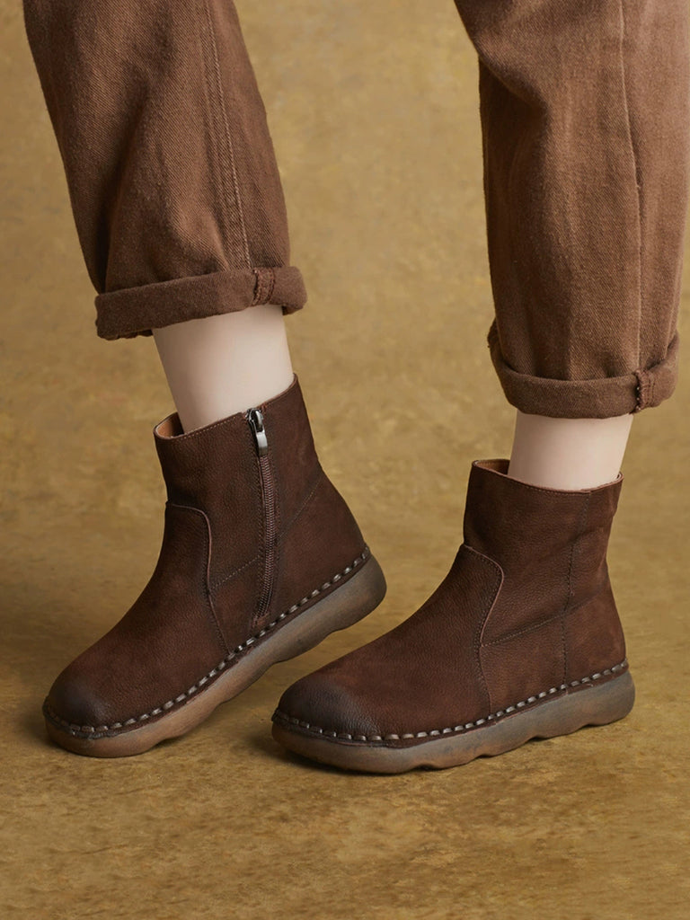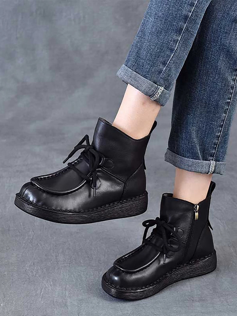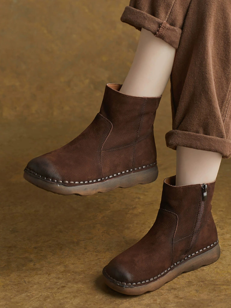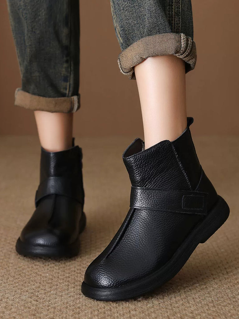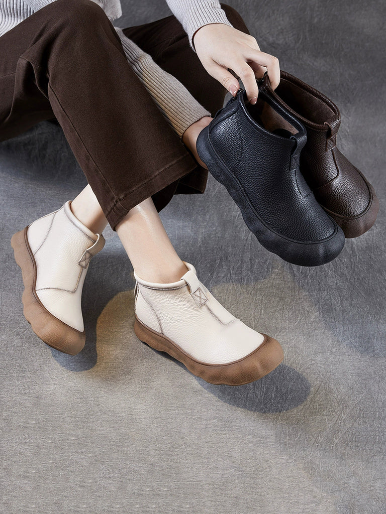 Women Vintage Genuine Leather Spliced Fleece-lined Ankle Boots