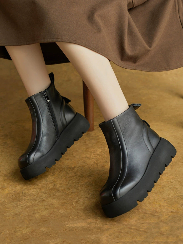 Women Winter Genuine Leather Fleece-lined Platform Ankle Boots