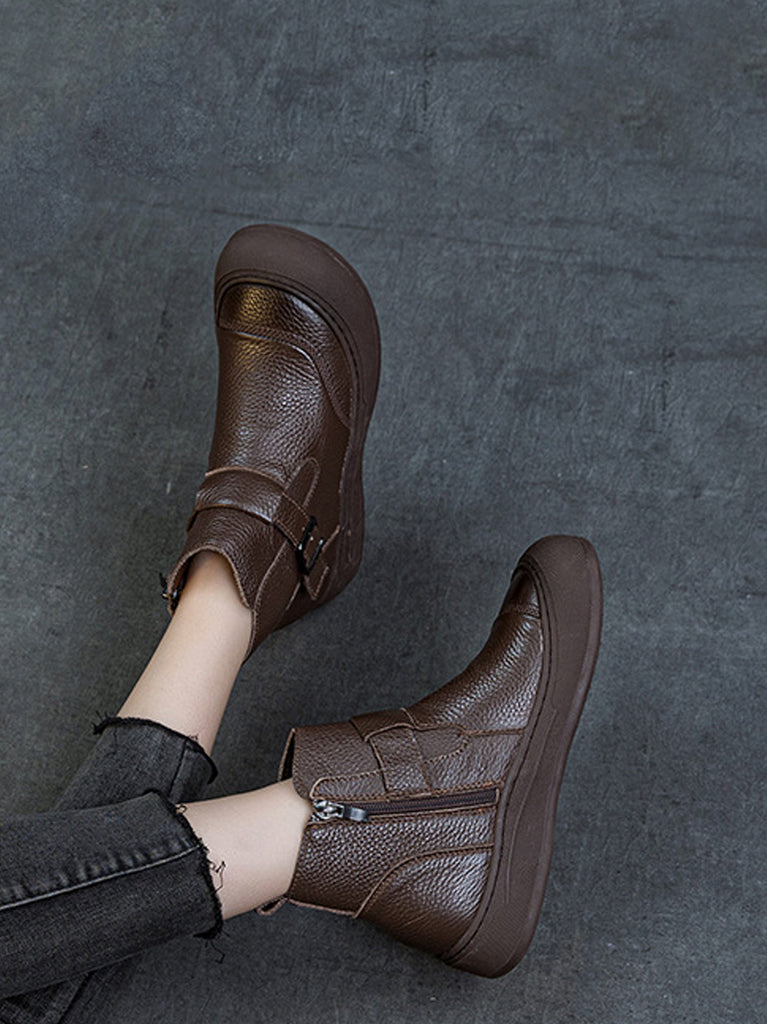 Women Casual Vintage Genuine Leather Fleece-lined Boots