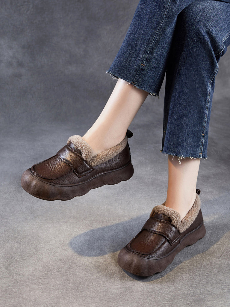 Women Winter Genuine Leather Fleece-lined Flat Shoes