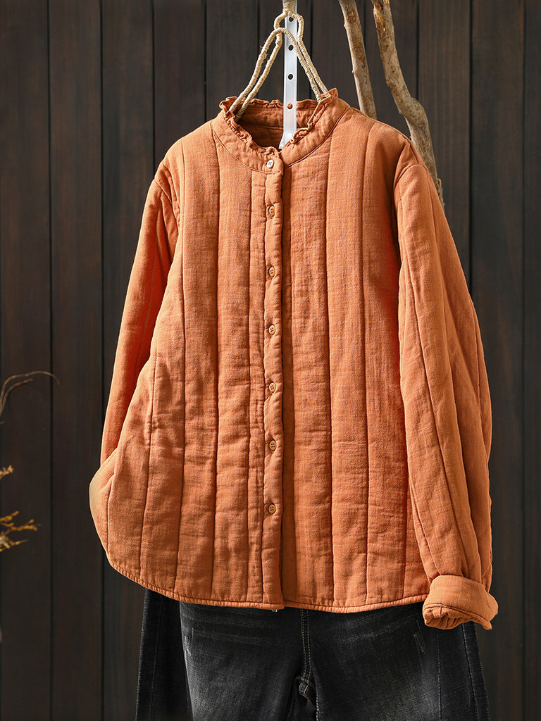 Women Winter Retro Lattice Stand Collar Padded Coat