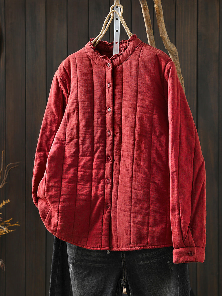 Women Winter Retro Pure Color Turn-down Collar Padded Coat
