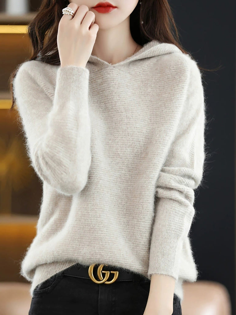 Women Winter Rhomboids Hooded Knitted Wool Sweater