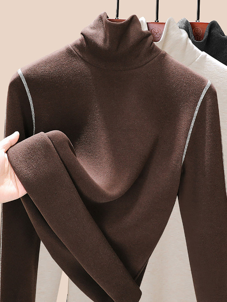 Women Winter Casual Fleece-lined Turtleneck Blouse