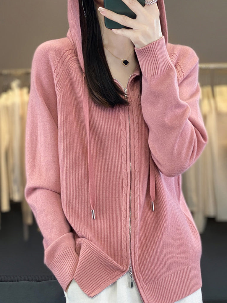 Women Autumn Retro Colorblock Hooded Sweater Coat