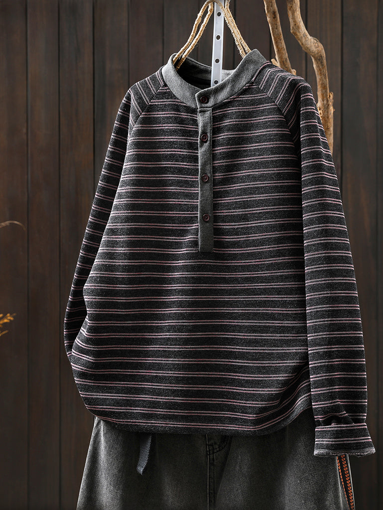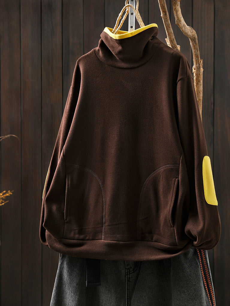Women Casual Autumn Colorblock Turtleneck Cotton Blouse