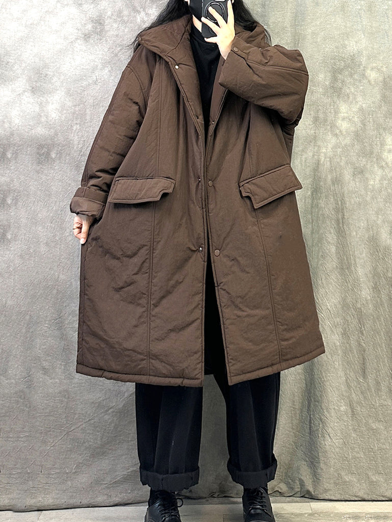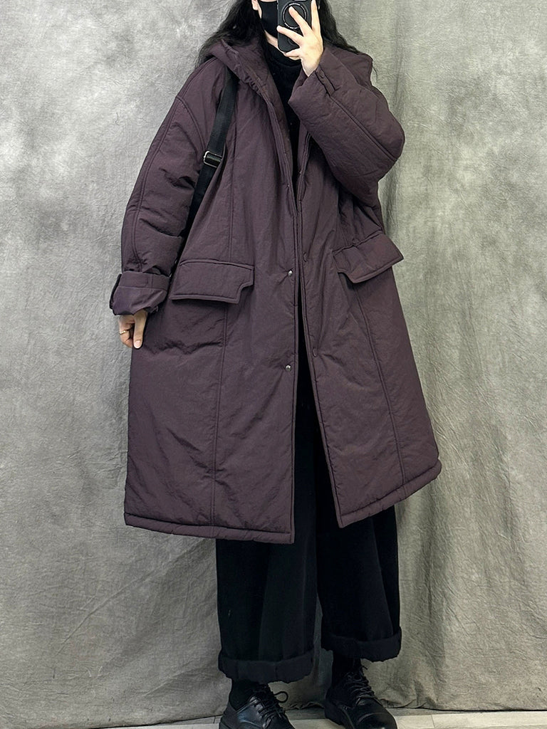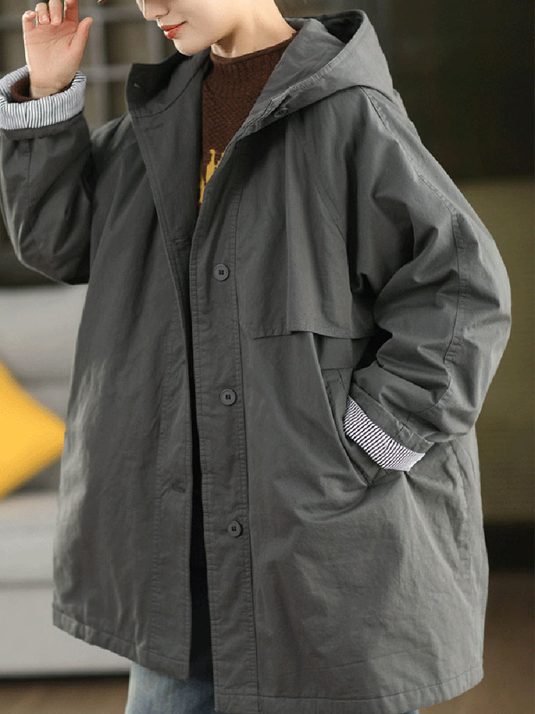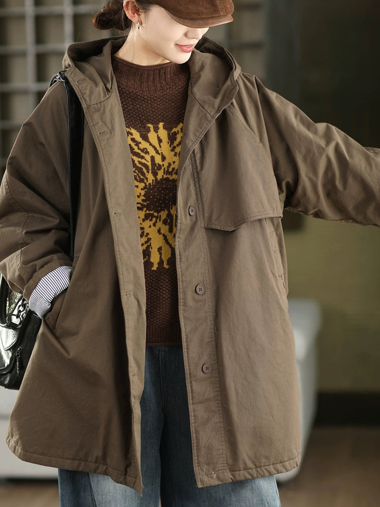 Women Winter Pure Color 100%Cotton Padded Hooded Coat