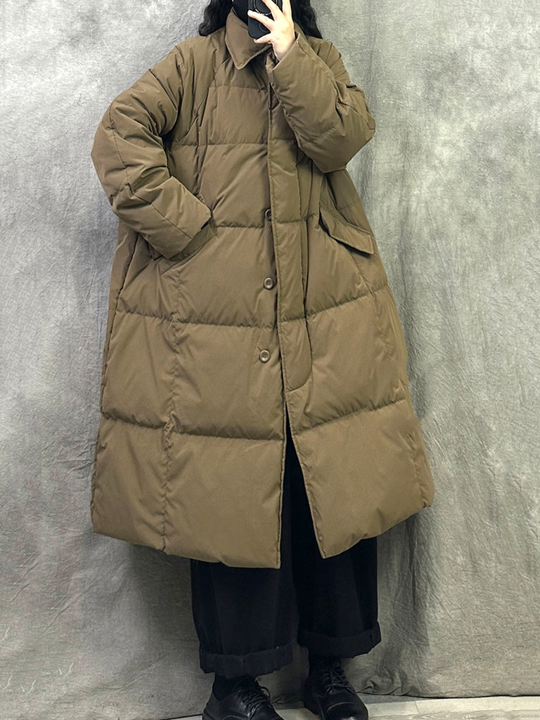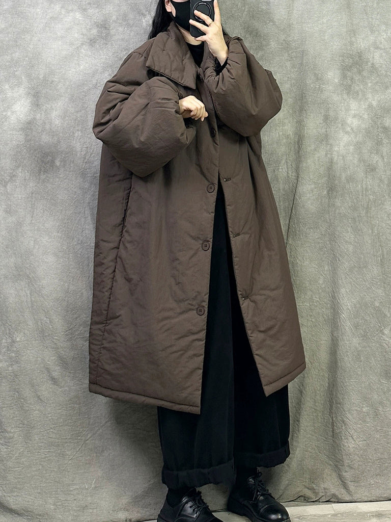 Women Winter Pure Color Padded Turn-down Collar Long Coat