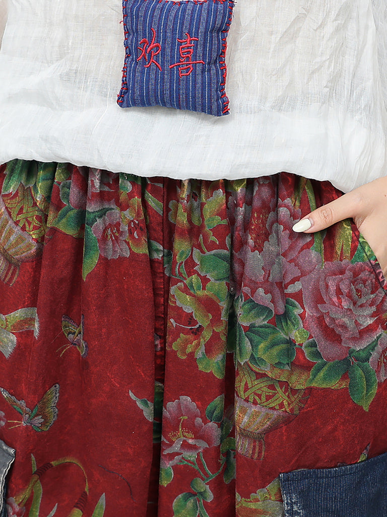 Plus Size Women Summer Retro Flower Patchwork Harem Pants
