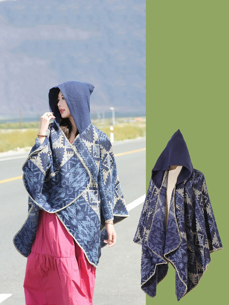 Ethnic Autumn Keep Warm Hooded Shawl Cape