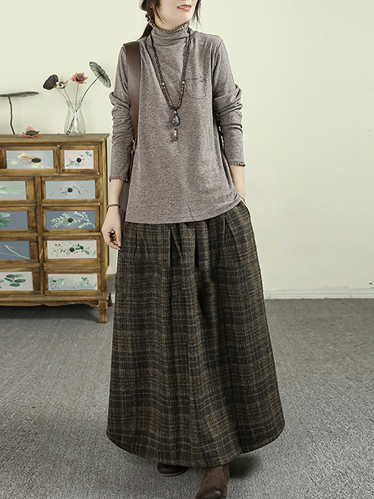 Women Casual Pure Color Turtleneck Blouse