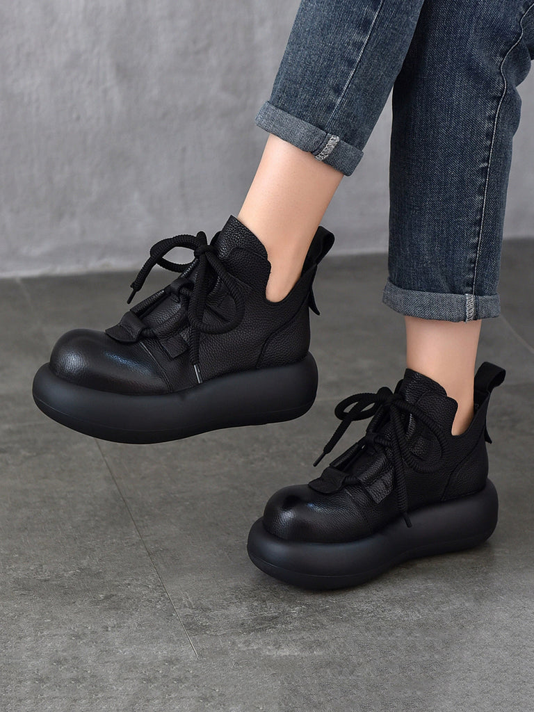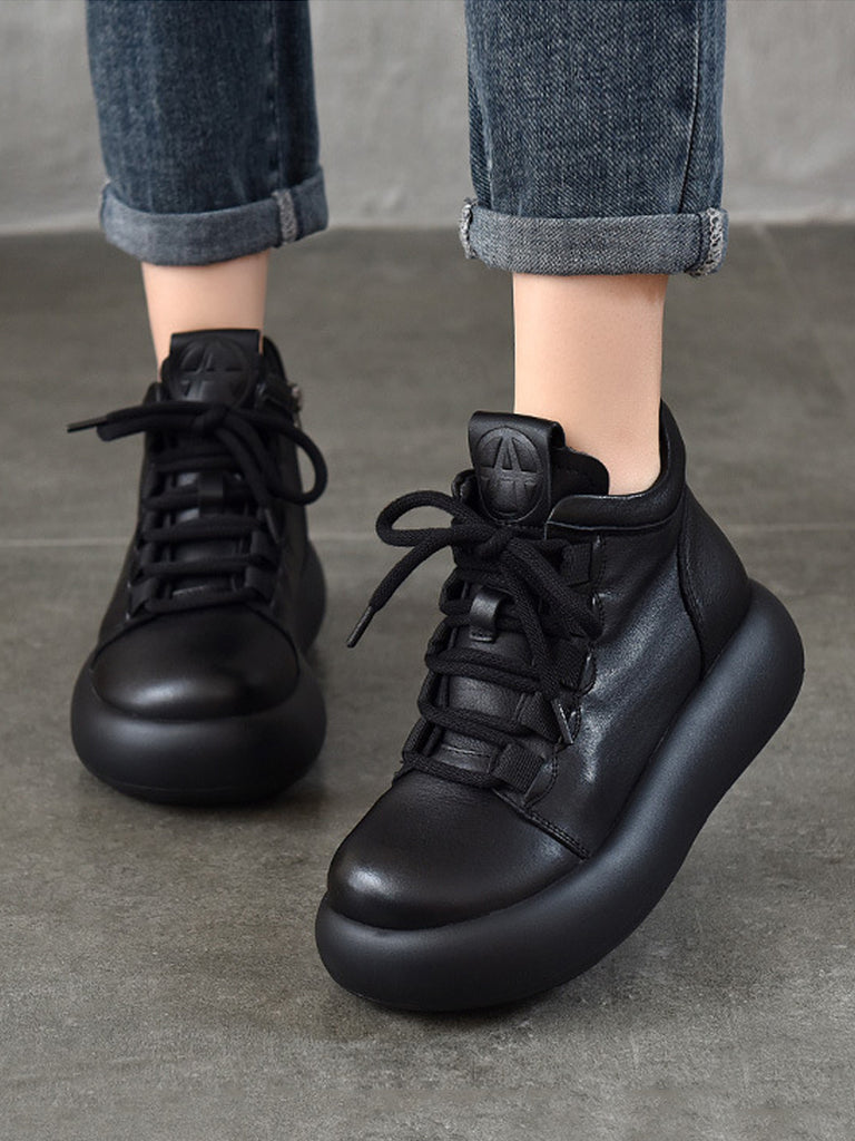 Women Autumn Pure Color Leather Zipper Platfrom Boots