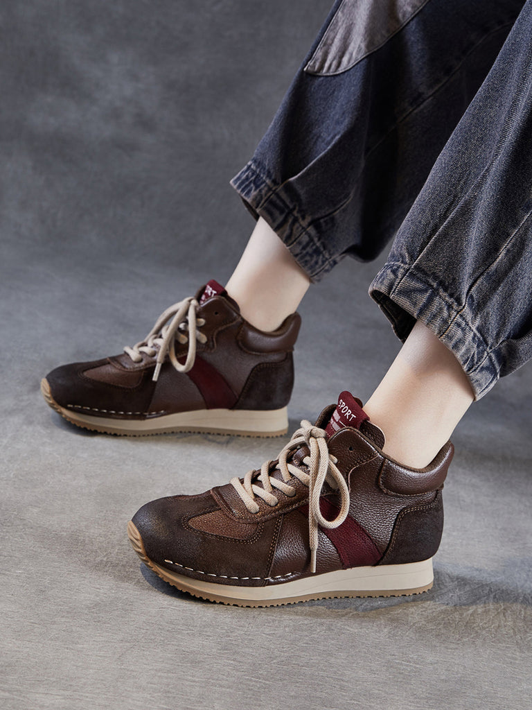 Women Vintage Genuine Leather Spliced Flat Shoes