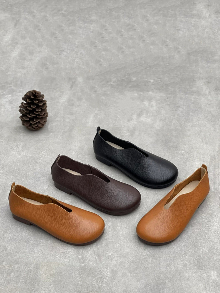 Women Autumn Genuine Leather Spliced Flat Shoes